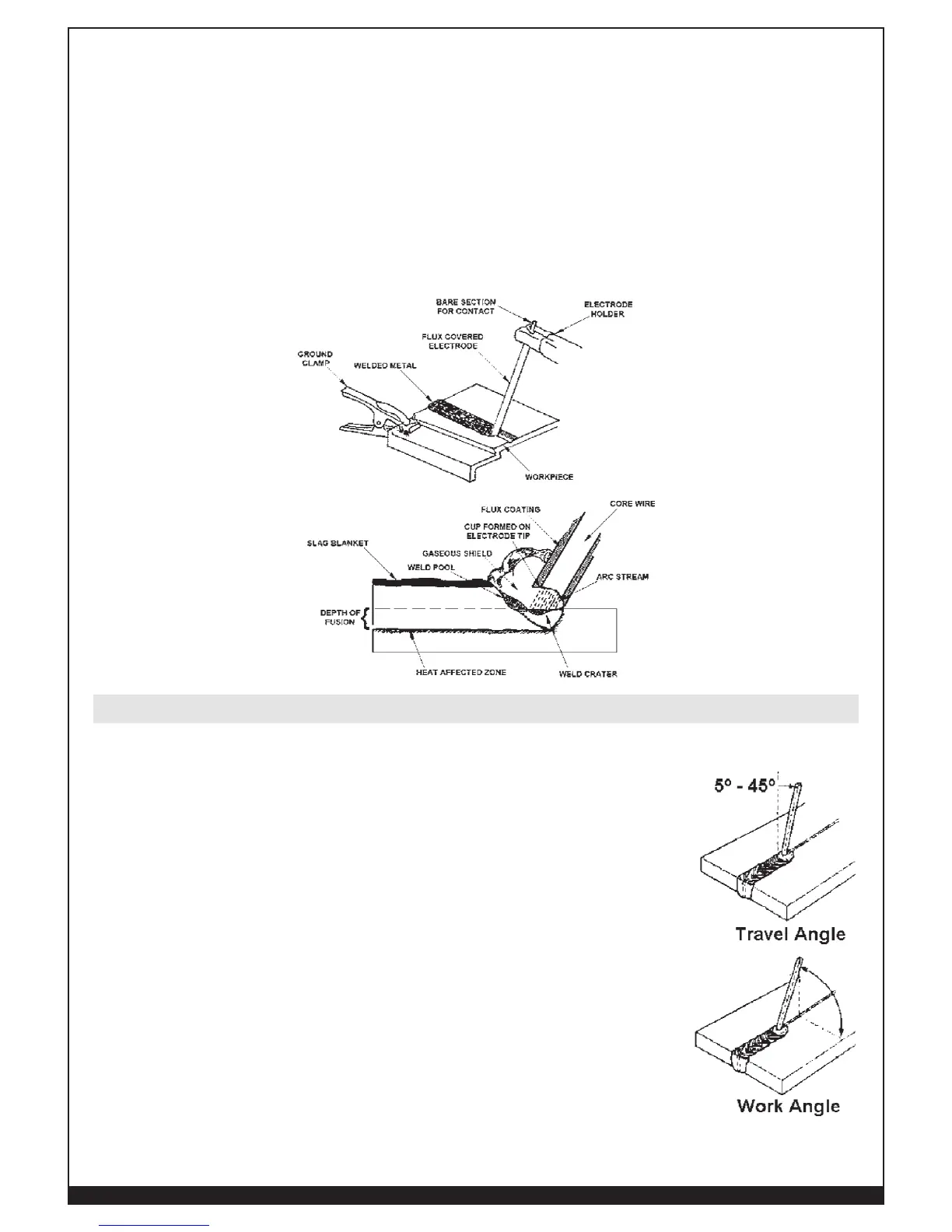 2. In the direction the weld is to be laid (travel angle)