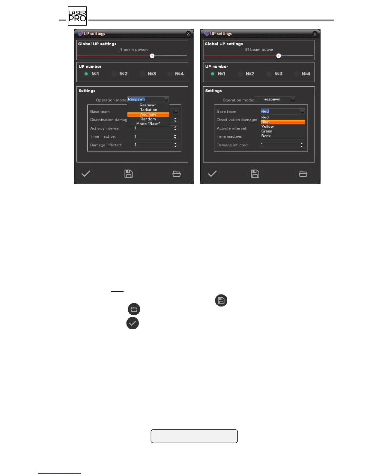 Settings pattern is saved by pressing the icon (suffix.sуt), to load settings saved