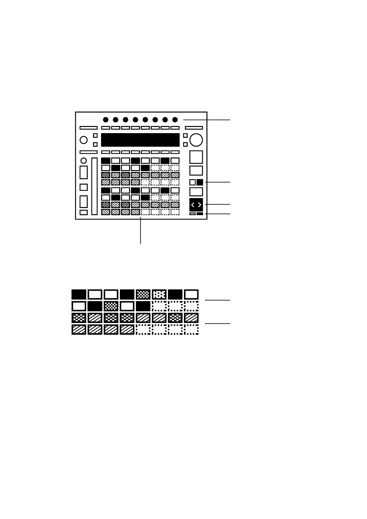 pads. The top rows corresponds to the Trig track, with orange accents, while the