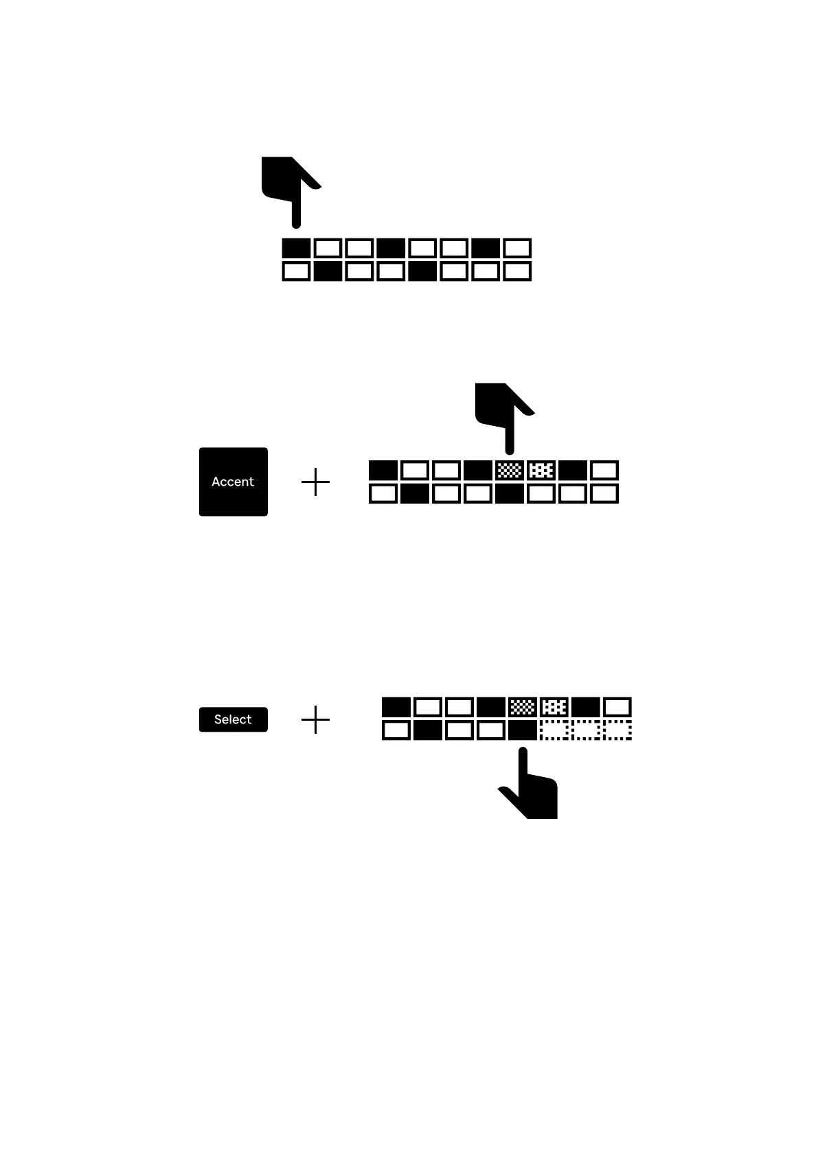 To add or remove a trig, tap or slide your nger across the pads. The pad will light