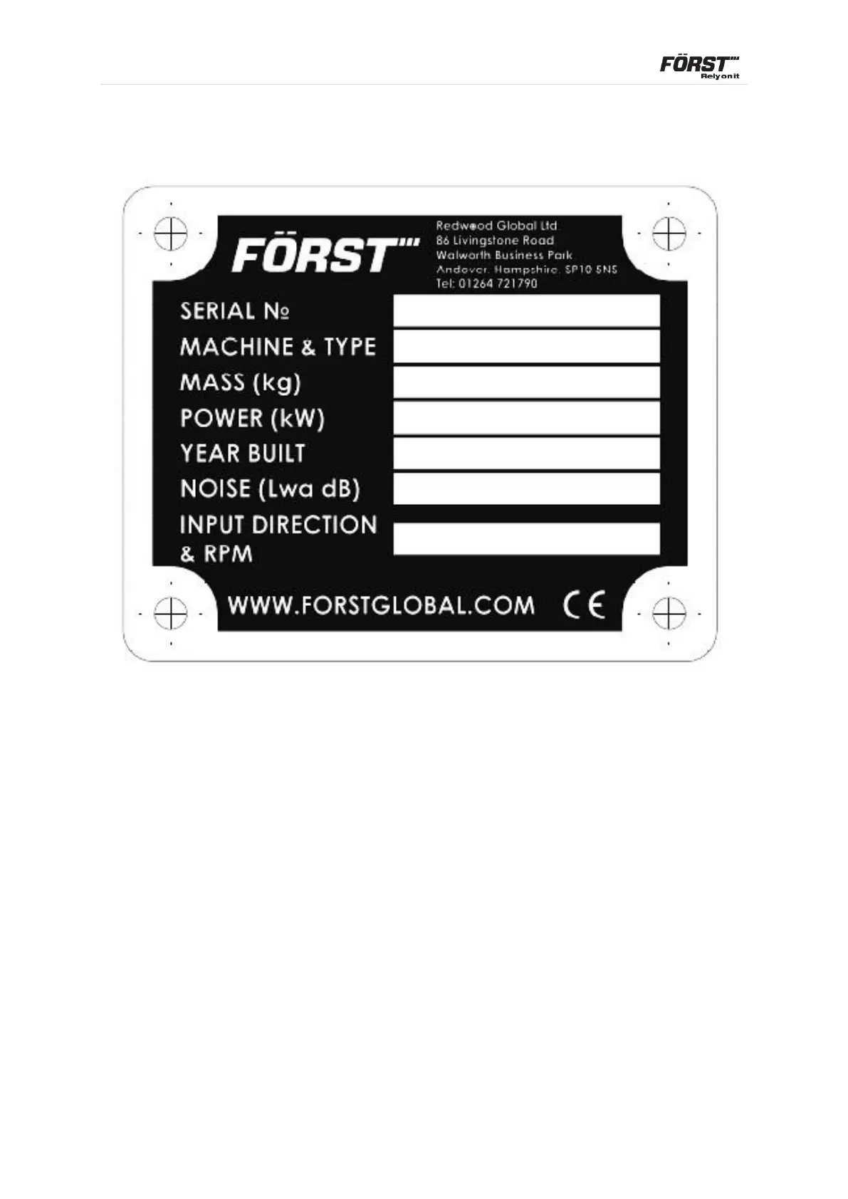 FORST ST6 D42 - 6.17 Manufacturers Statutory Plate