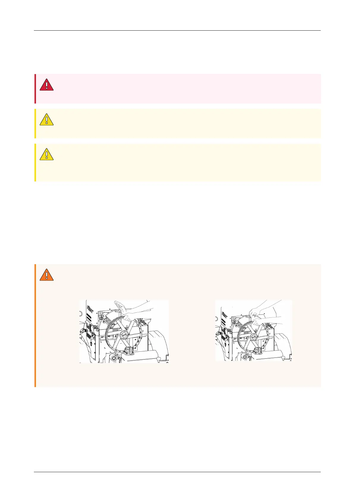 When moving the flywheel in either direction, position your hands correctly to