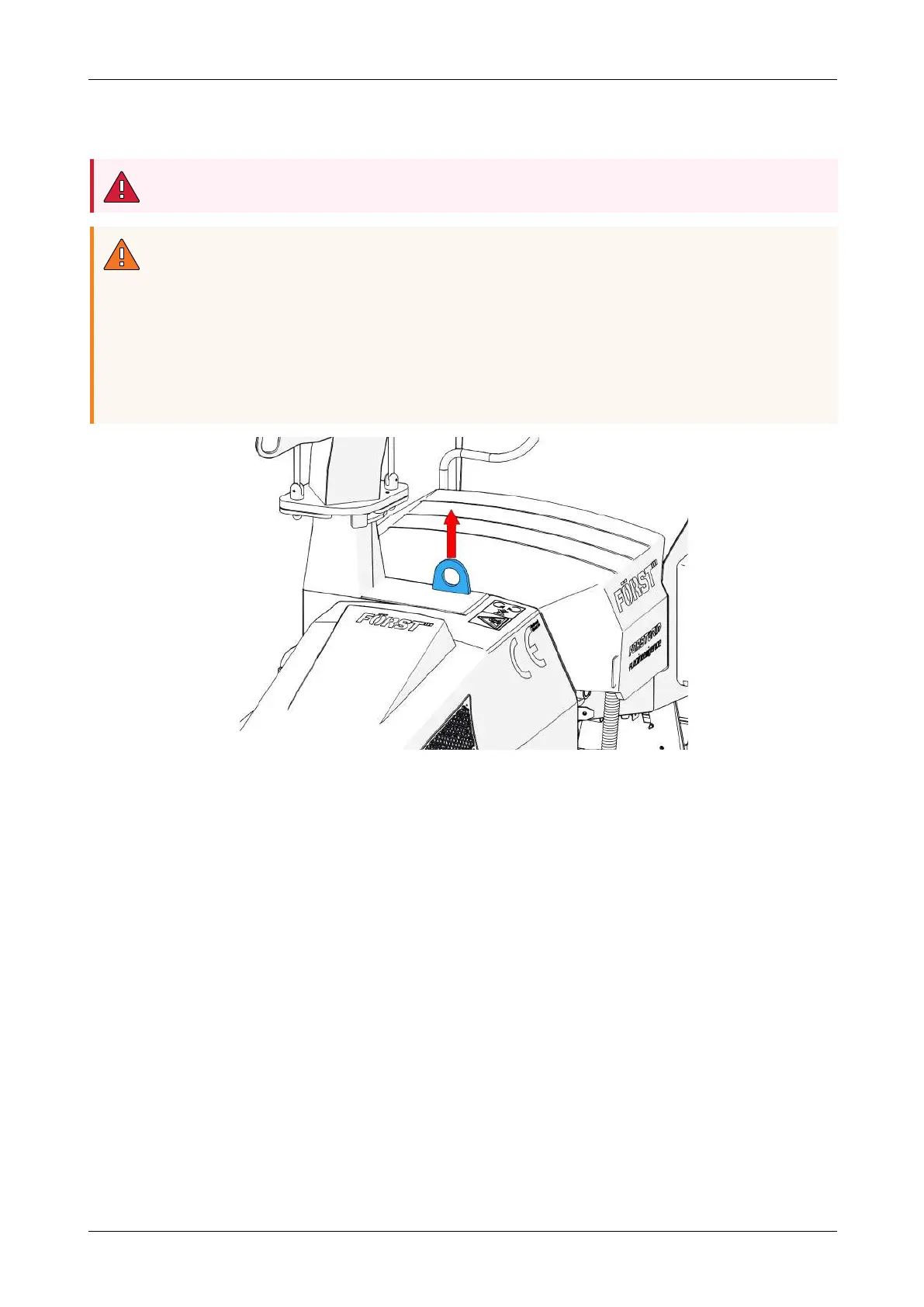 When lifting the woodchipper, be aware that the lifting eye can securely hold