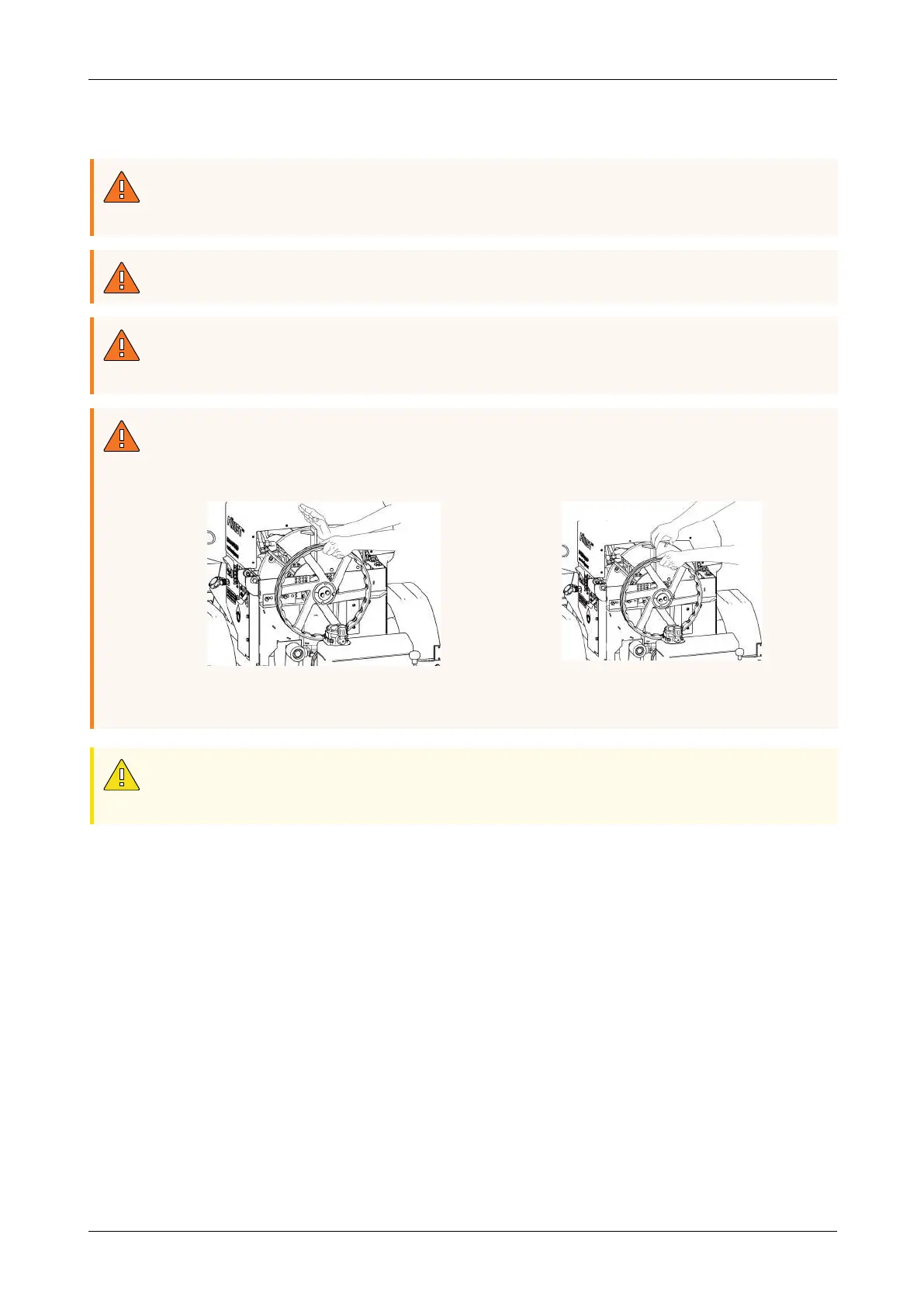 When moving the flywheel in any direction, position your hands correctly to