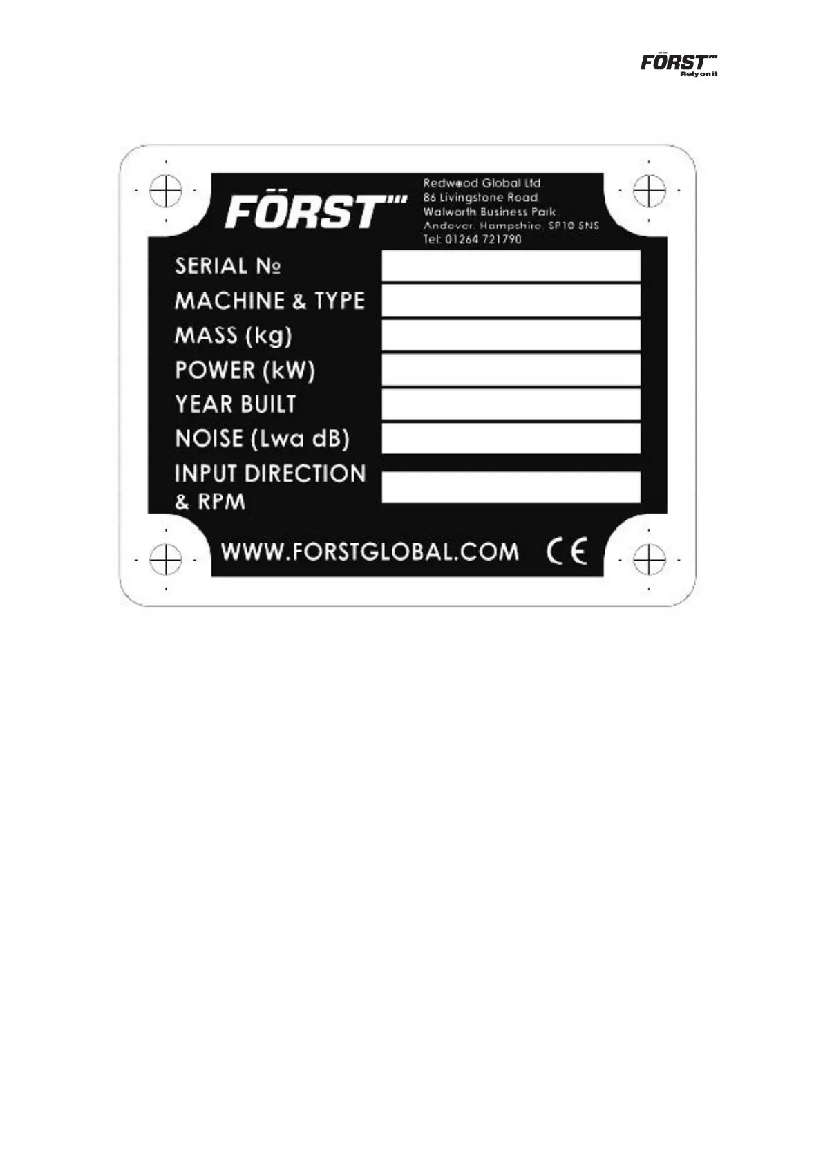 FORST ST8 D 55 - Manufacturers Plate Information