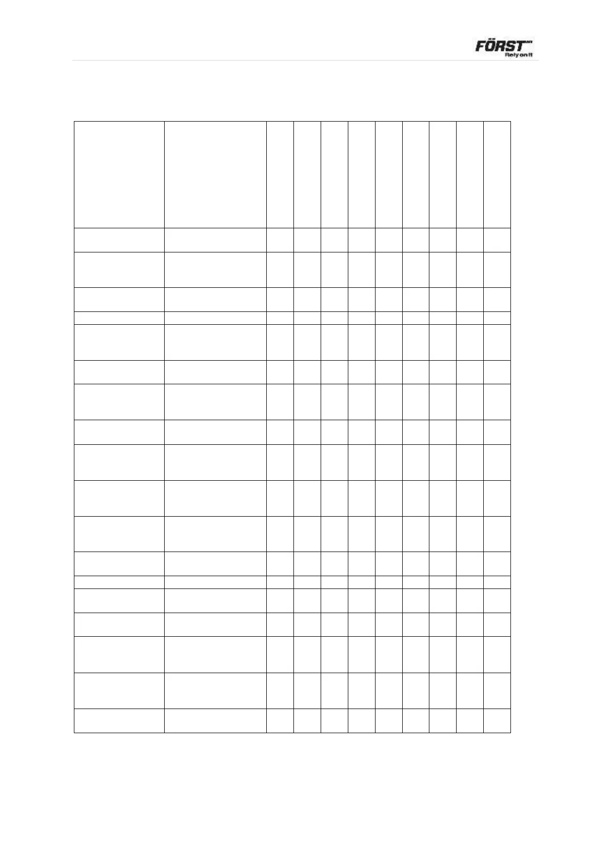 FORST TR8D - 5.4 Service Schedule