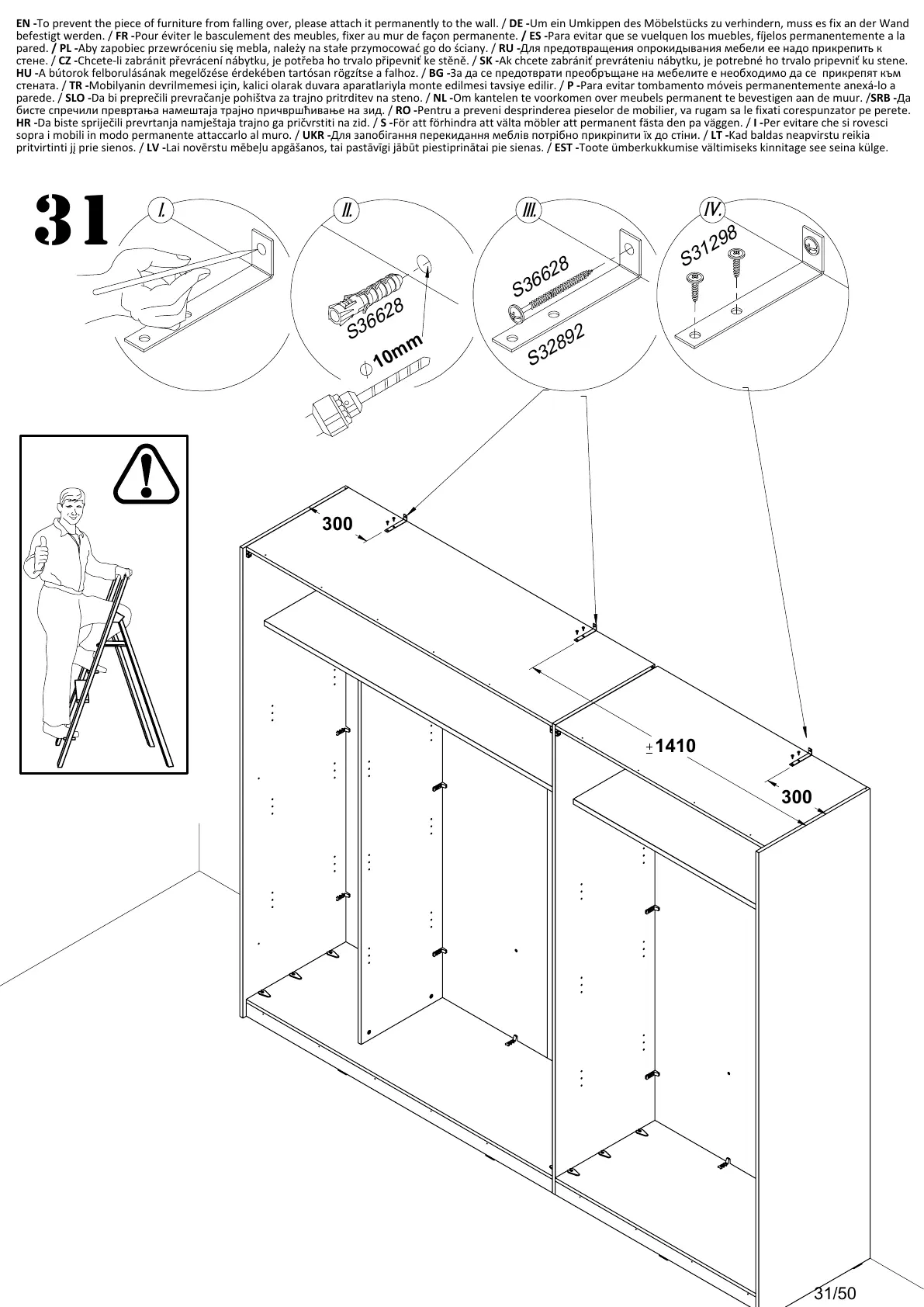 Pentru a preveni desprinderea pieselor de mobilier, va rugam sa le fixati corespunzator pe perete.