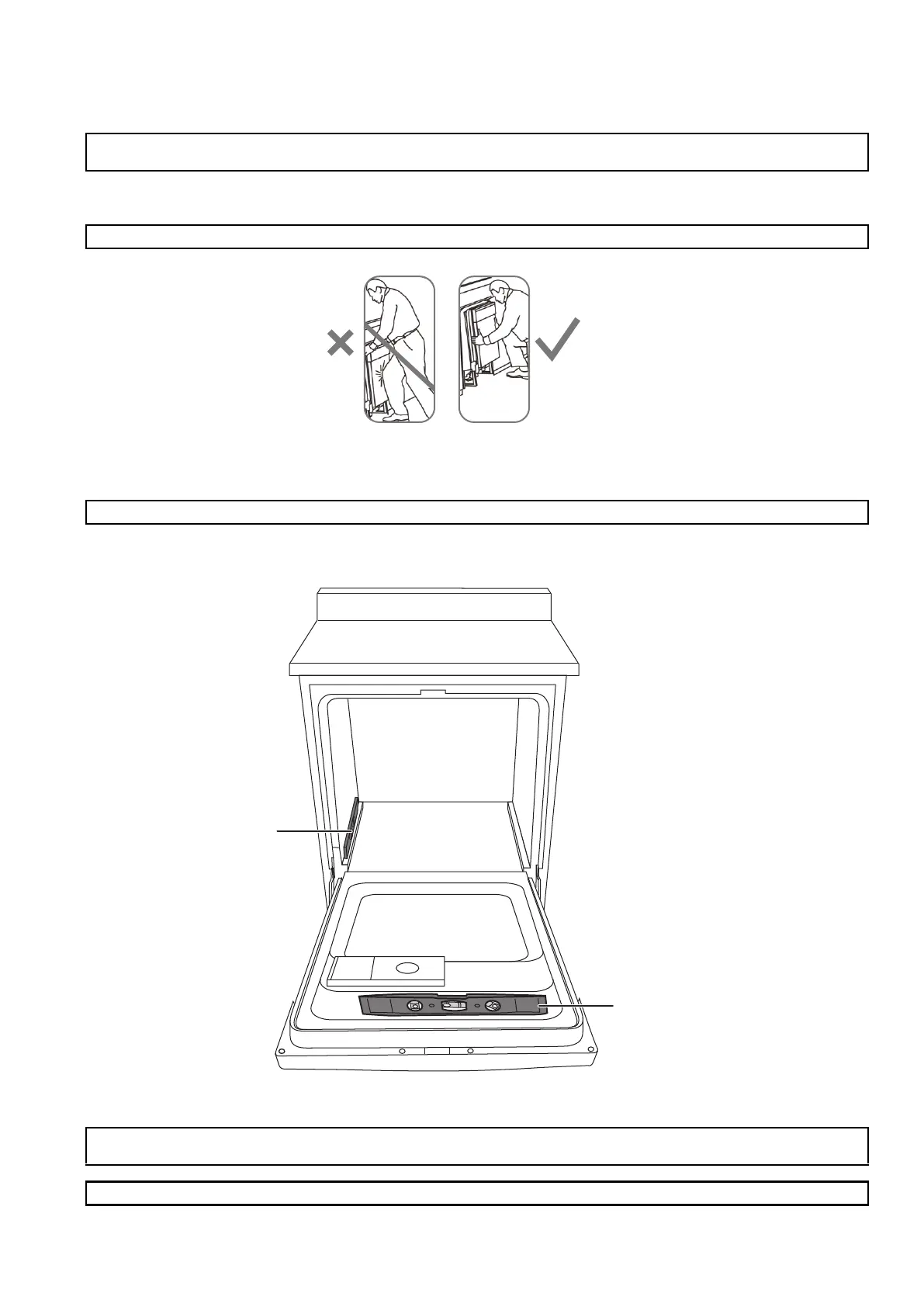 Be careful not to dent the front panel with your knees or damage the countertop or cabinets with dishwasher parts.