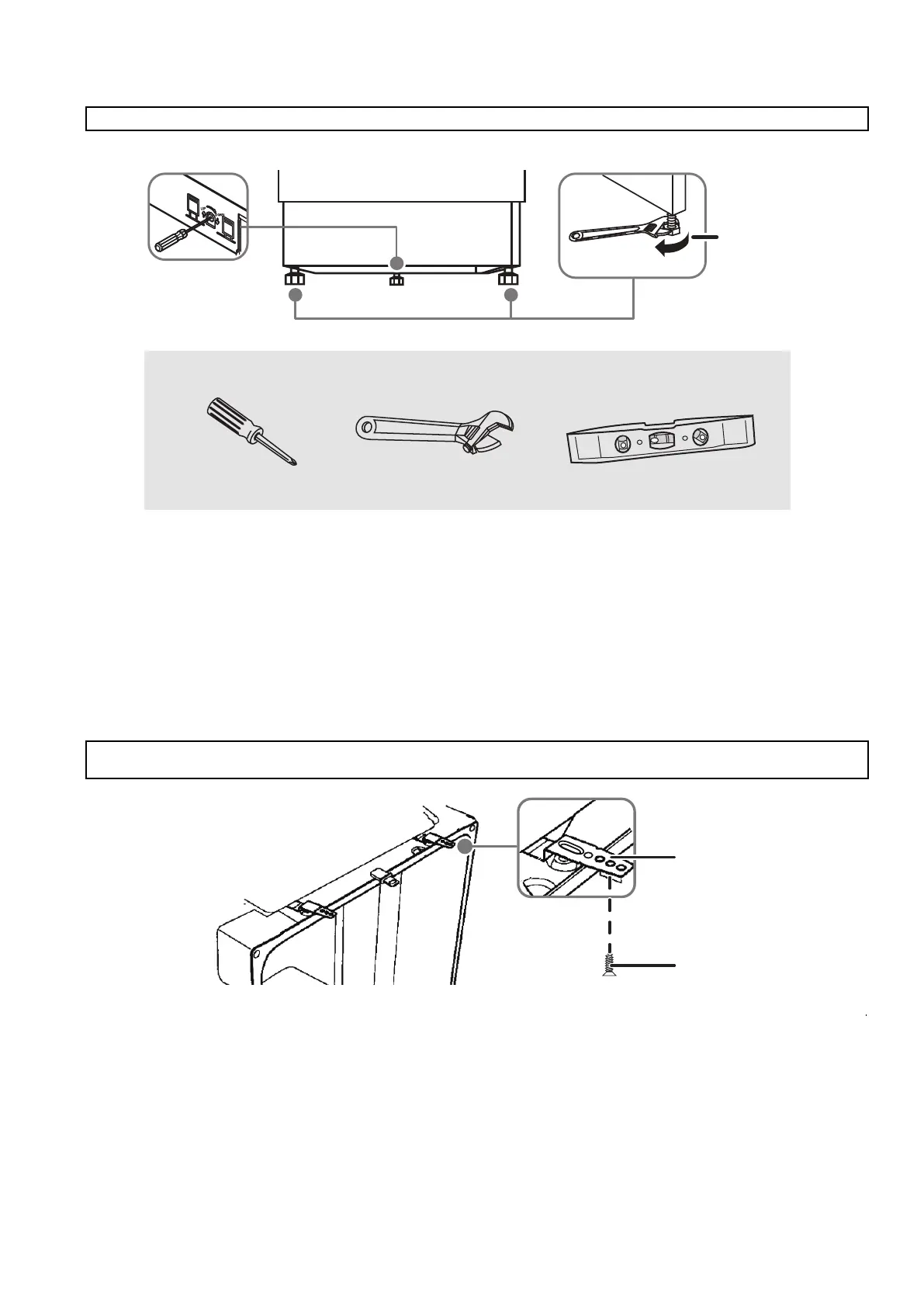 3 Secure the dishwasher to the countertop through the holes in the brackets, using the screws provided.