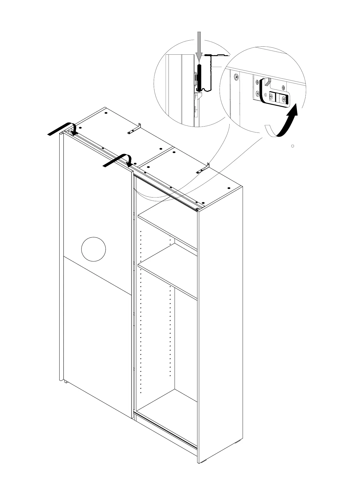 Forte Ohio - Assembly Step 24: Installing Right Sliding Door; Inserting Right Door into Tracks