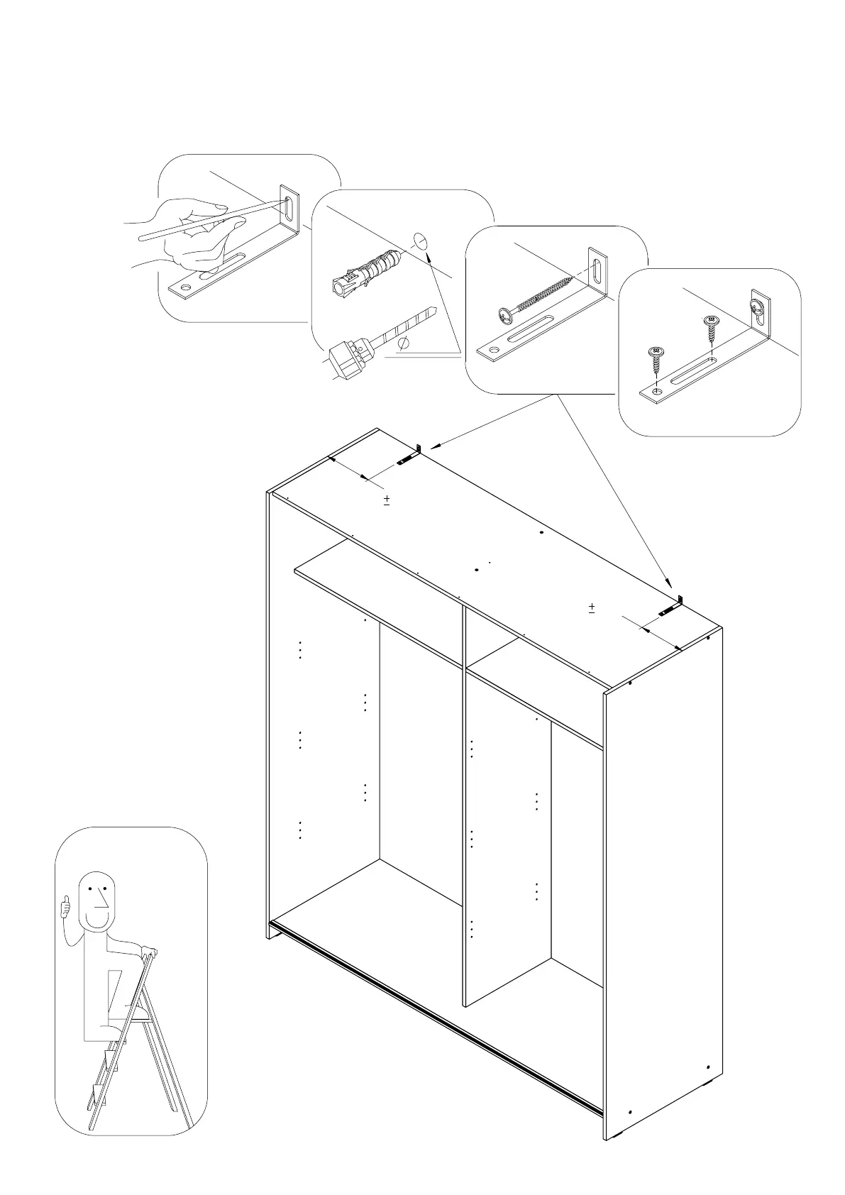 To prevent the piece of furniture from falling over, please attach it permanently to the wall. /