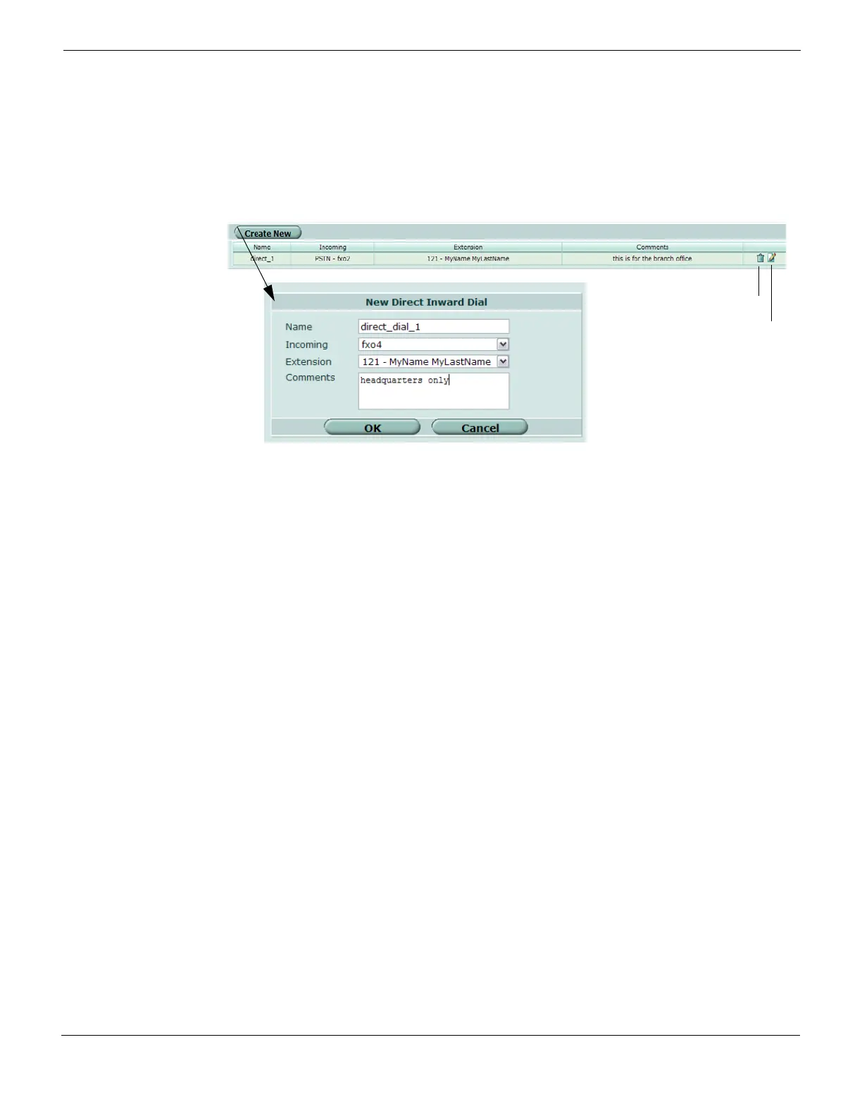 Comments A description about the direct inward dial configuration.