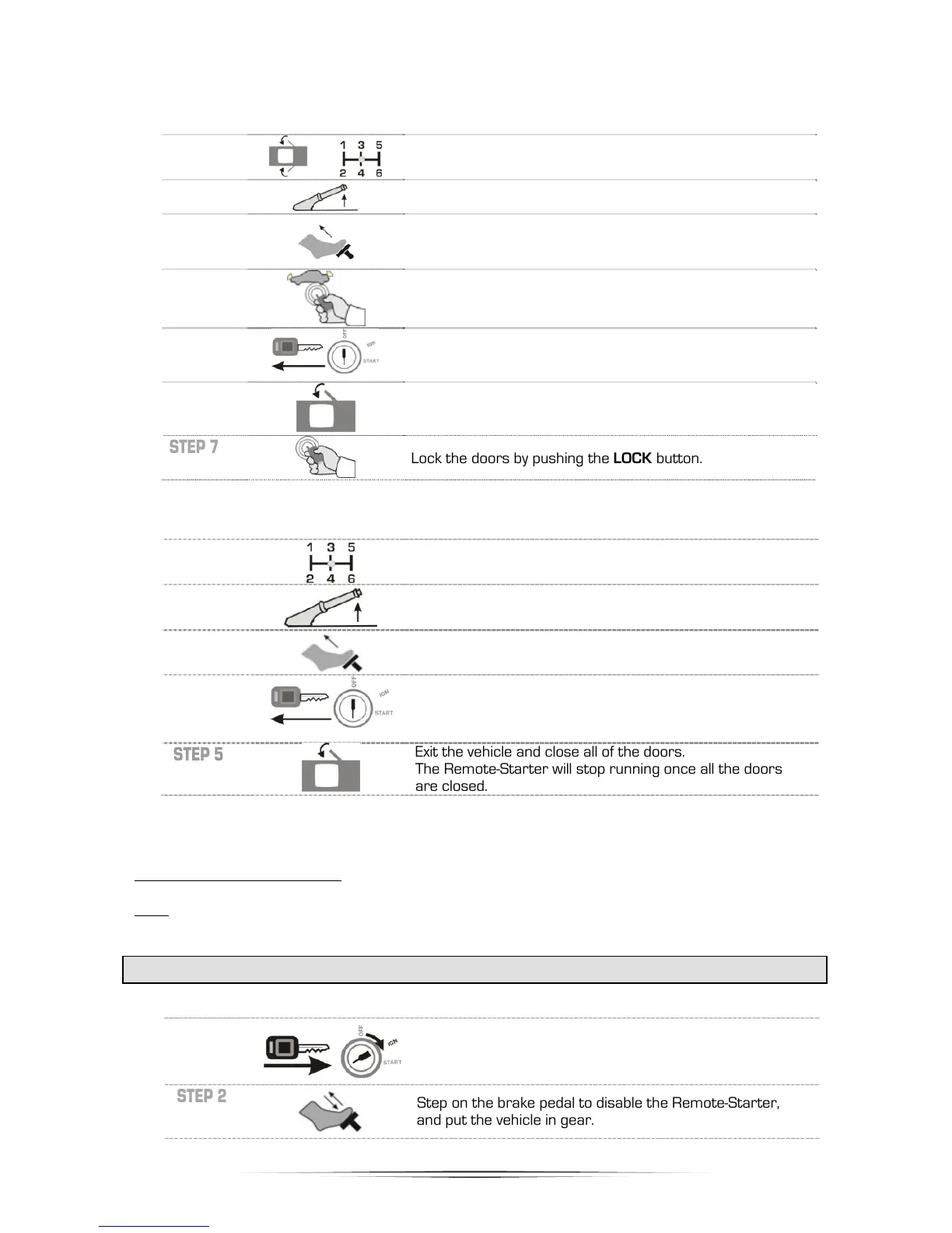 Step on the brake pedal to disable the Remote-Starter,