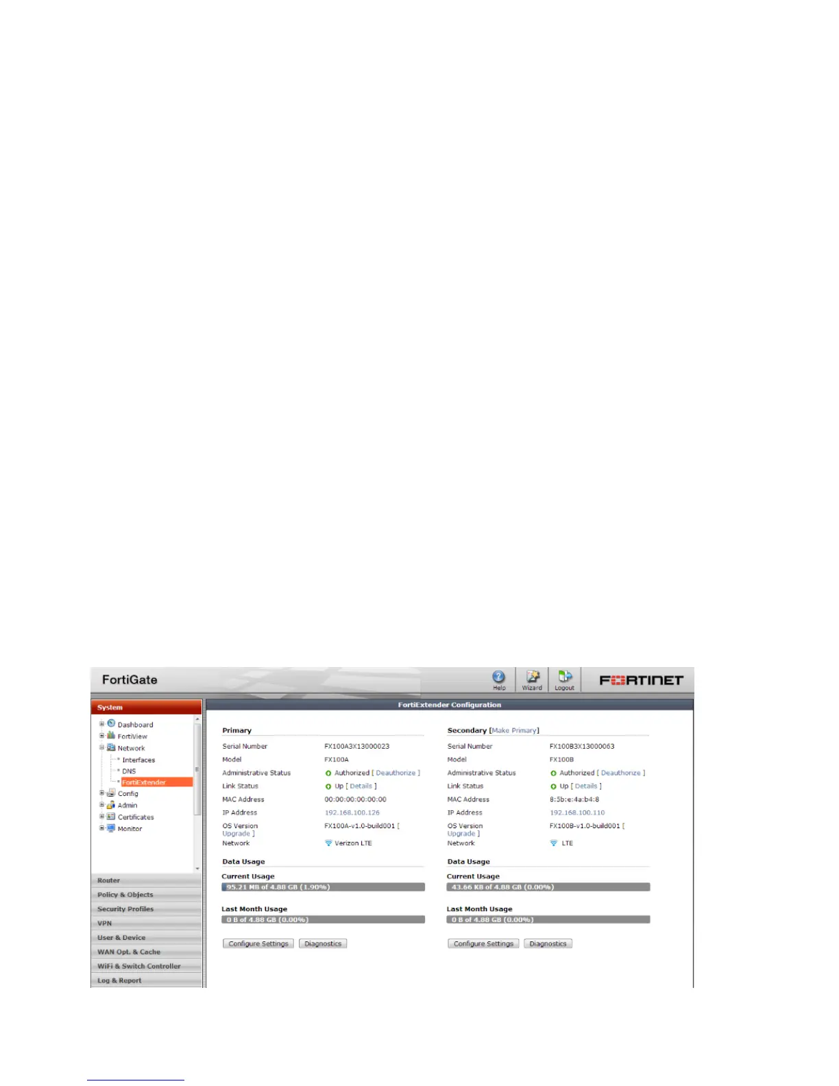 FortiExtender requires no user configuration in most networks. Once linked, FortiGate can