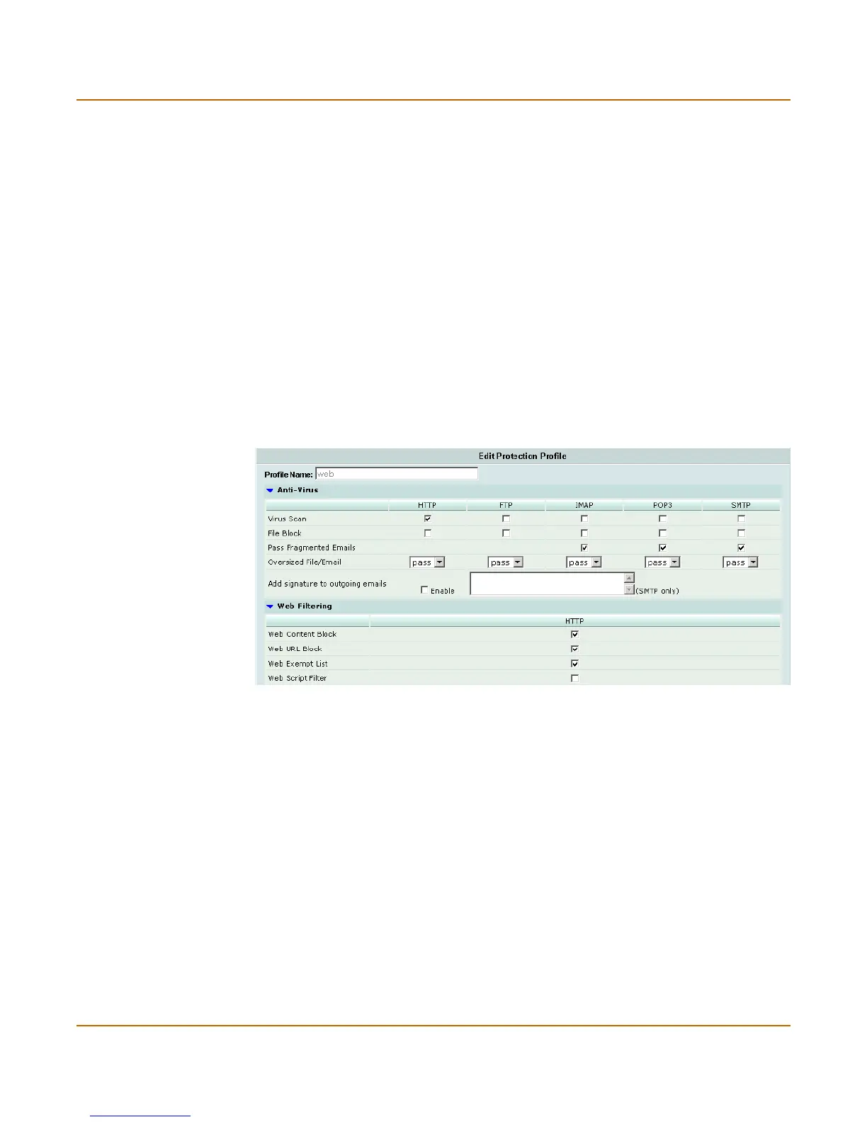 Scan To apply antivirus scanning and file quarantining to HTTP, FTP, IMAP,