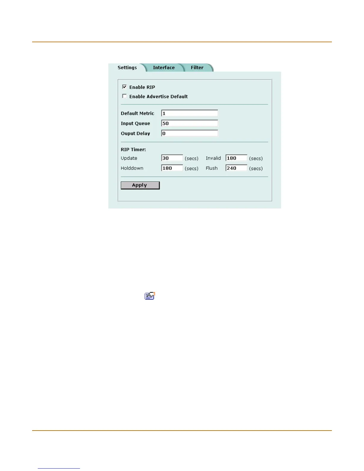 You can customize a RIP configuration for each FortiGate interface. This allows you to