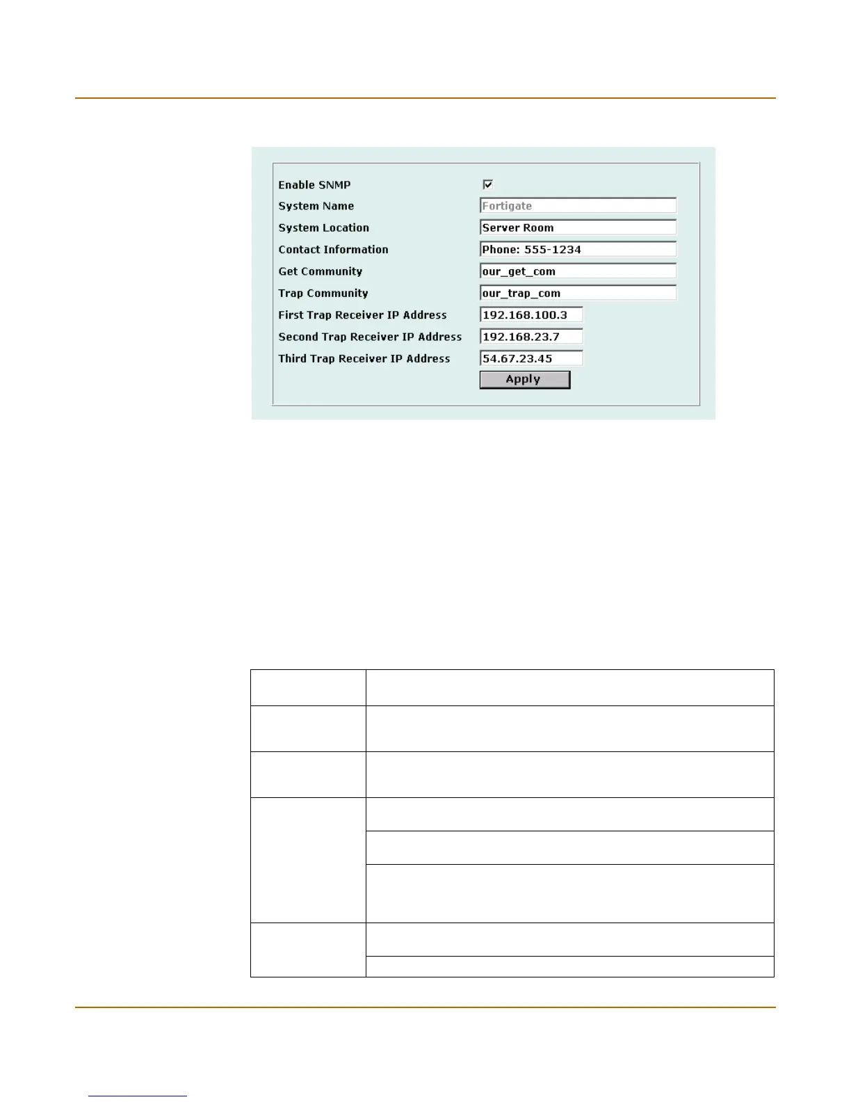 information about FortiGate traps, see “FortiGate traps” on page 129.