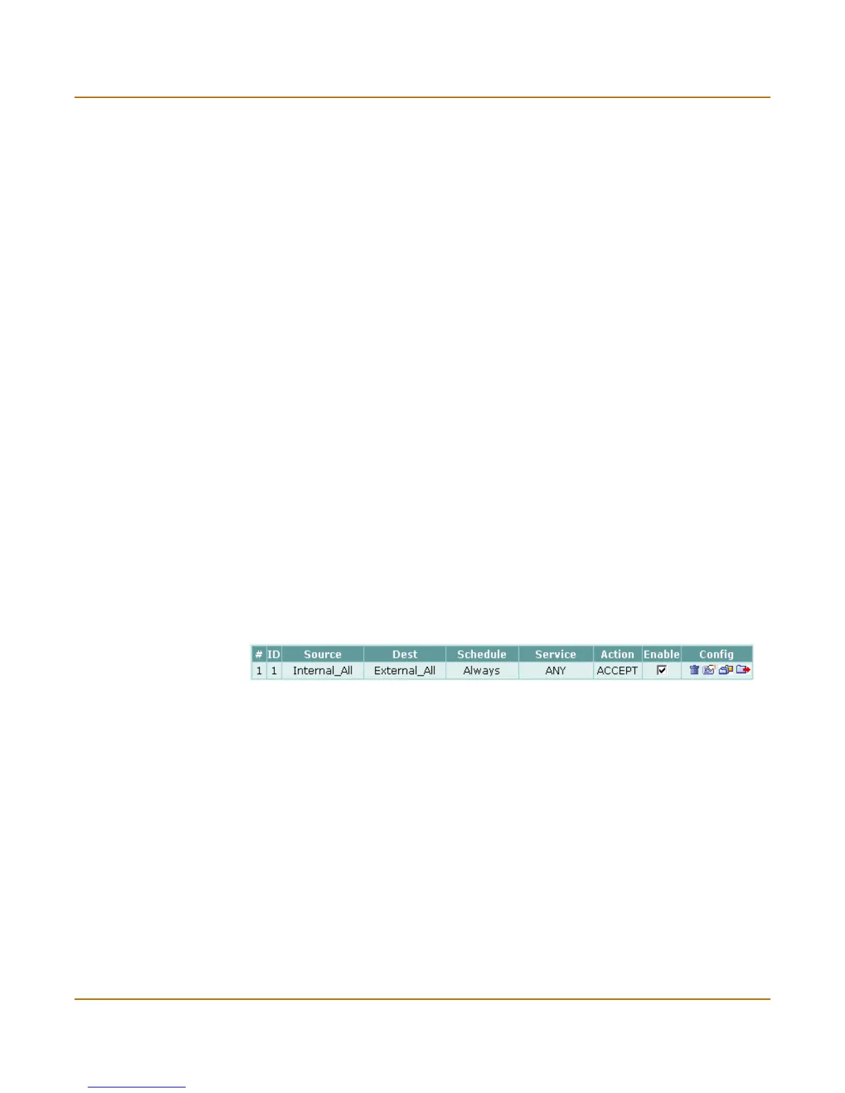 internal network can connect through the FortiGate unit to the Internet. The firewall