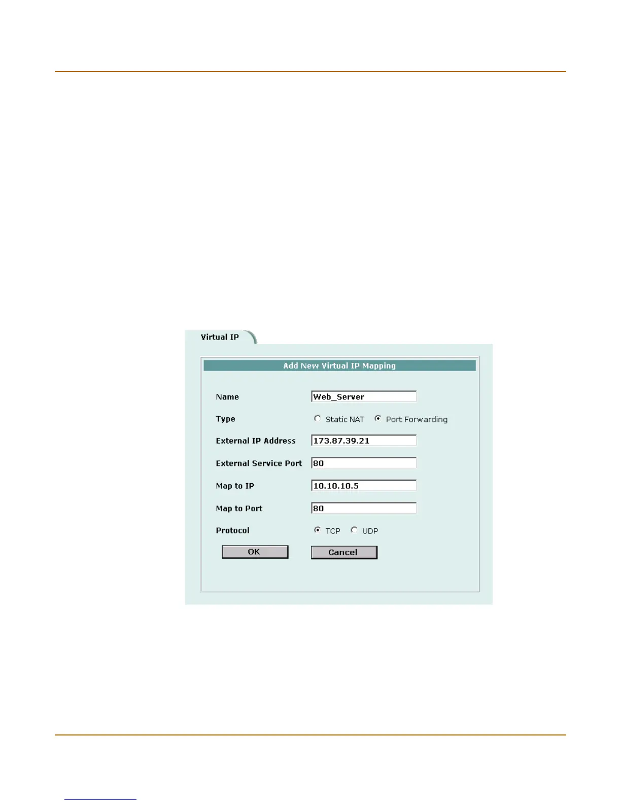 forwarded. For example, if the virtual IP provides access from the Internet to a web