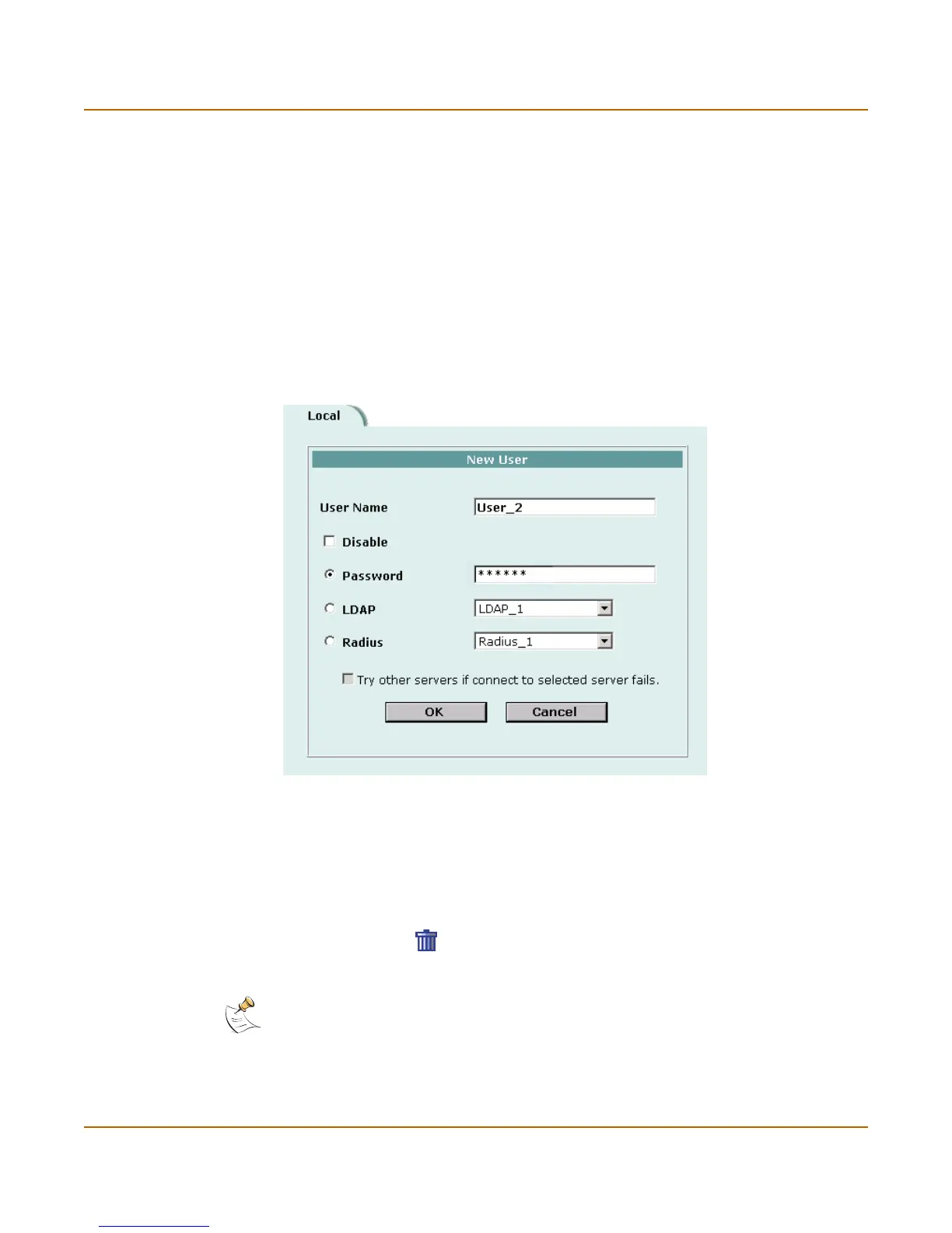 Radius Require the user to authenticate to a RADIUS server. Select the name of the
