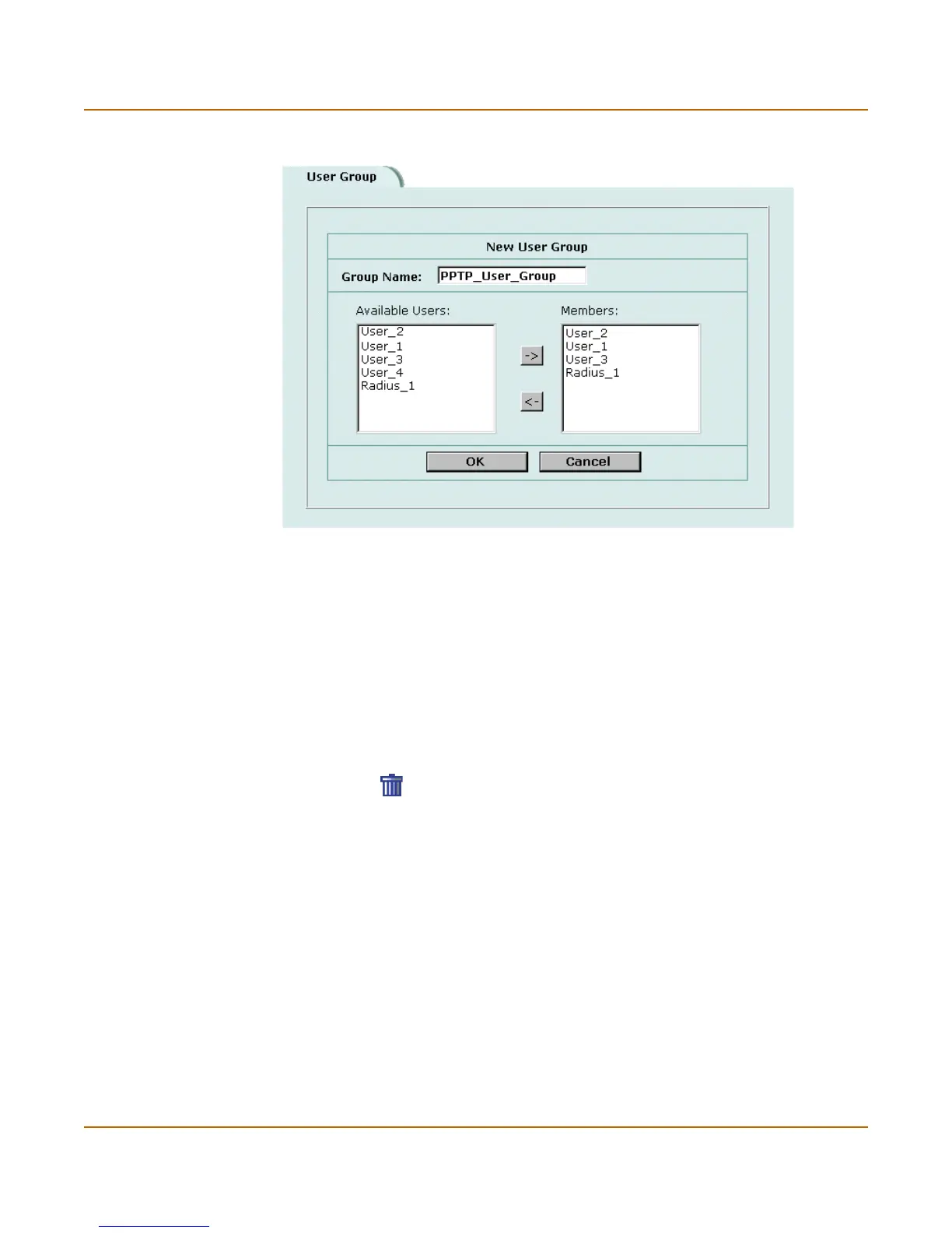 7 To remove users, RADIUS servers, or LDAP servers from the user group, select a
