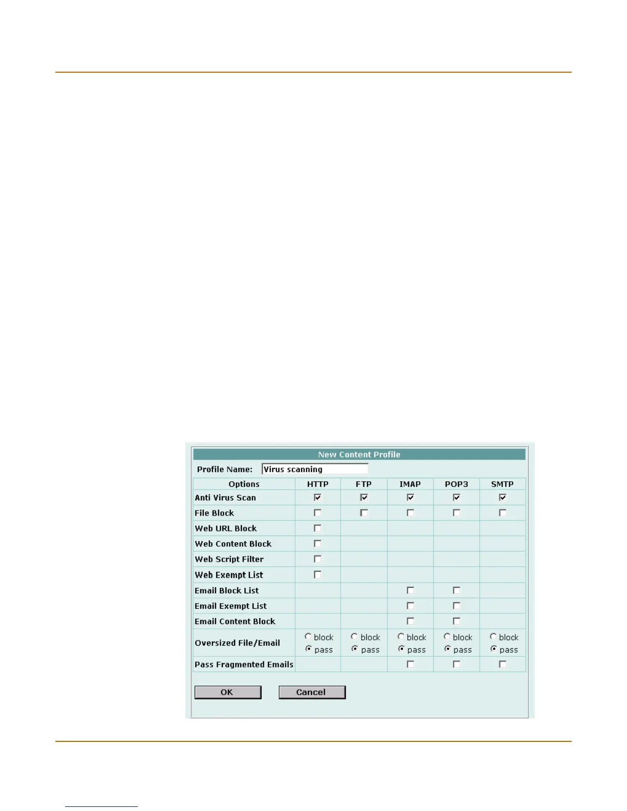 Figure 34: Example content profile for virus scanning