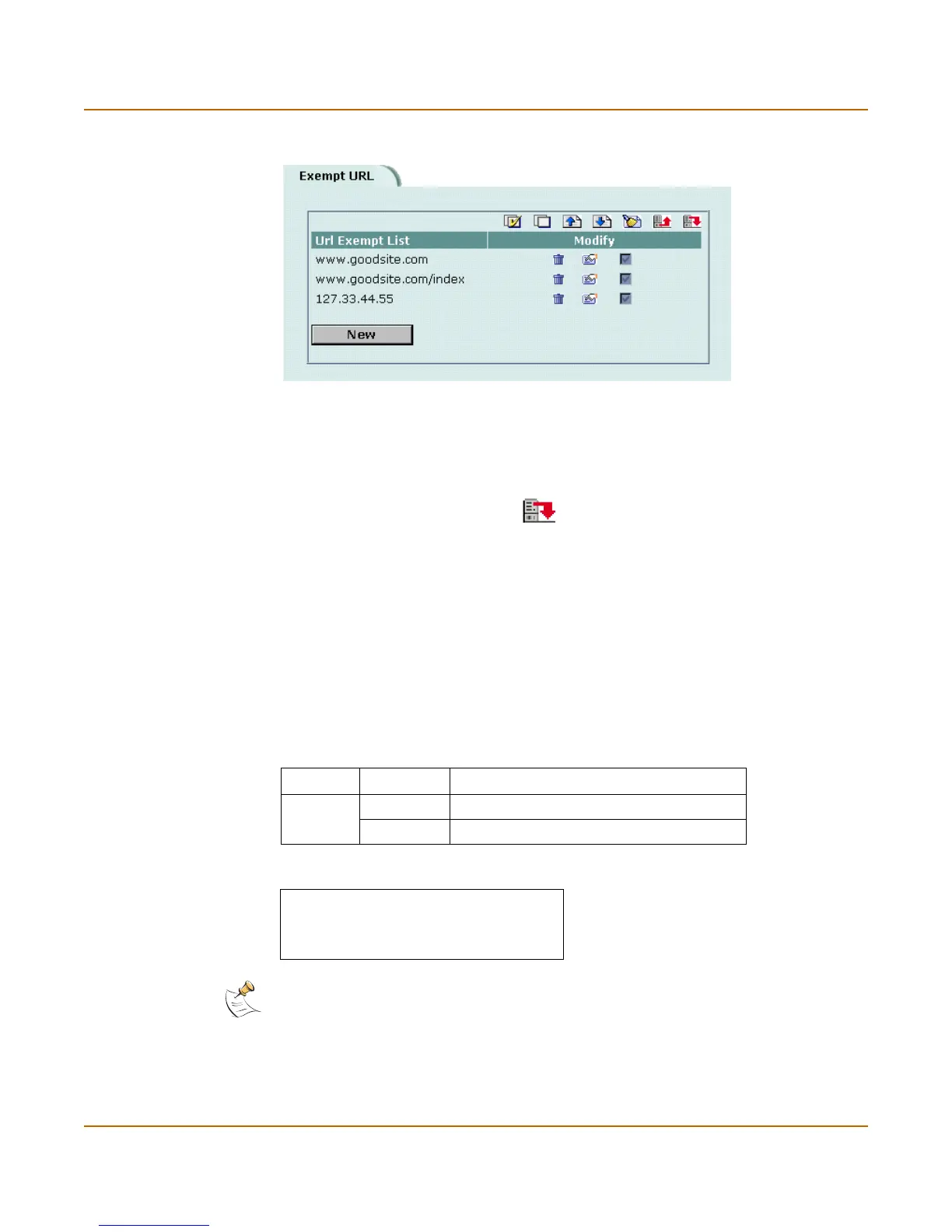 Figure 40: Example URL Exempt list