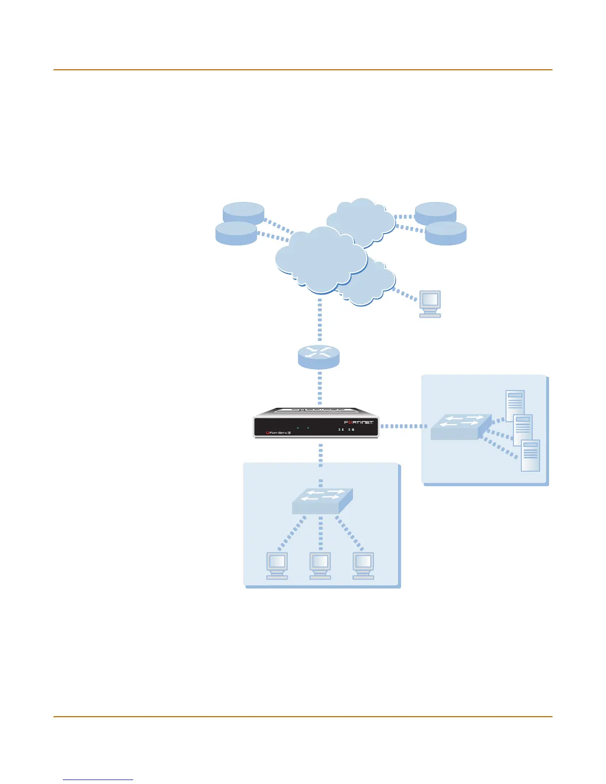 FortiGate unit must connect to the “upstream” router leading to the external network.