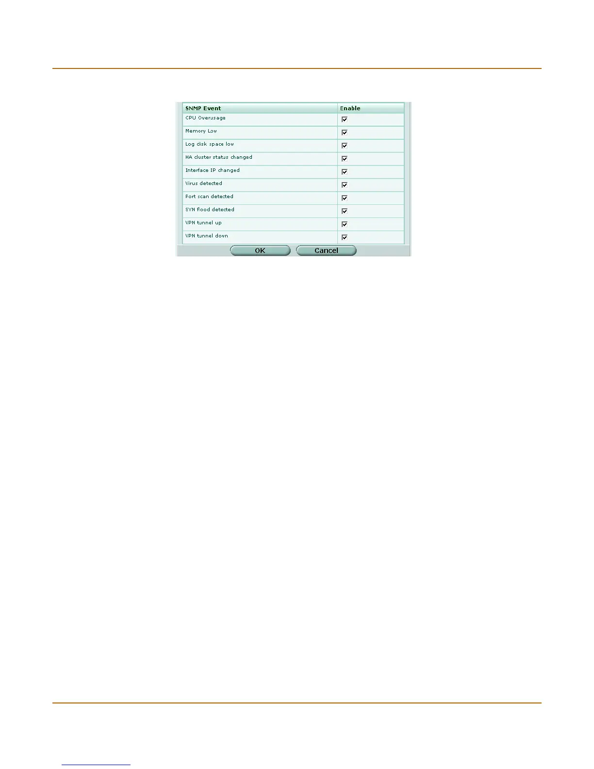 SNMP Event Enable each SNMP event for which the FortiGate unit should send traps