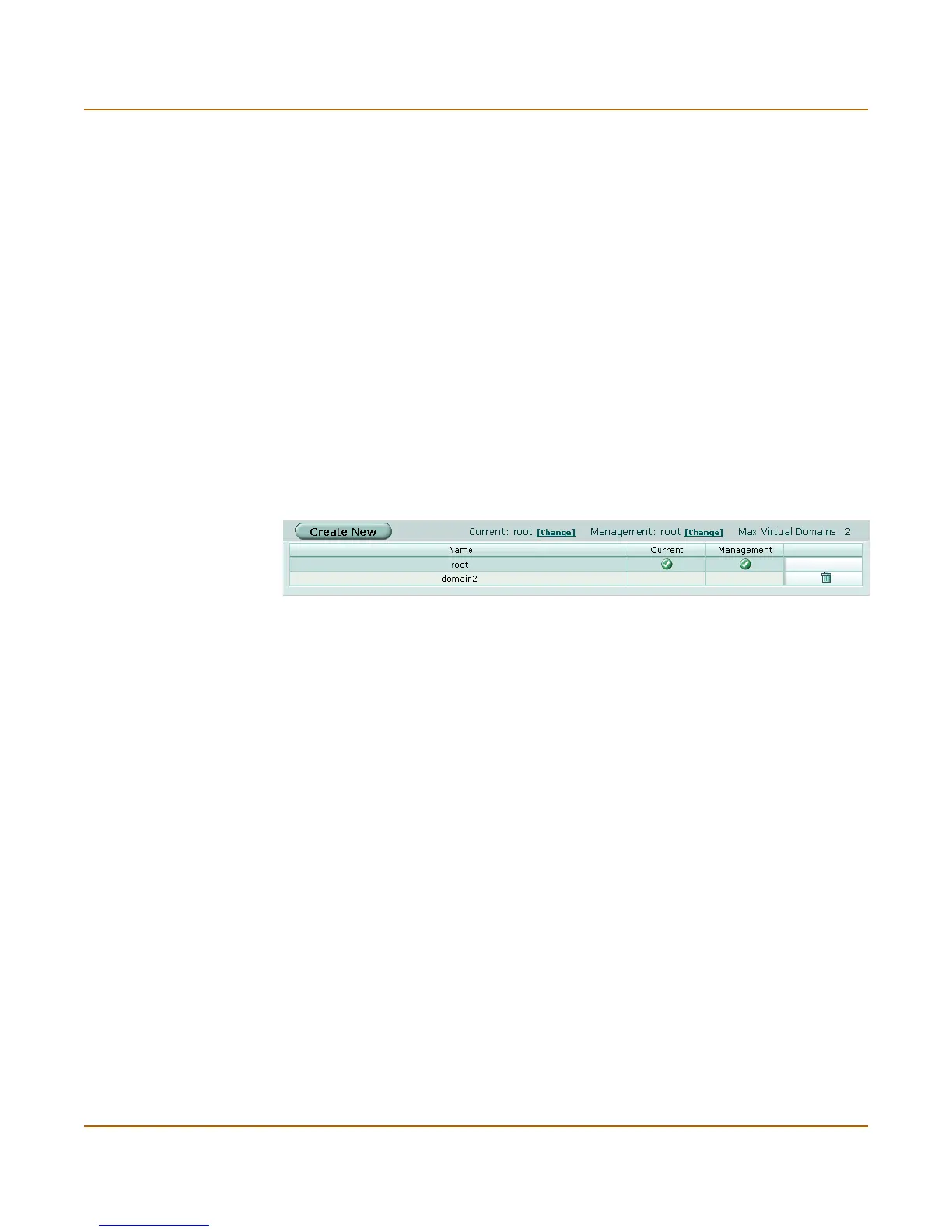 model. Administrators have access to all of the virtual domains on the FortiGate unit.