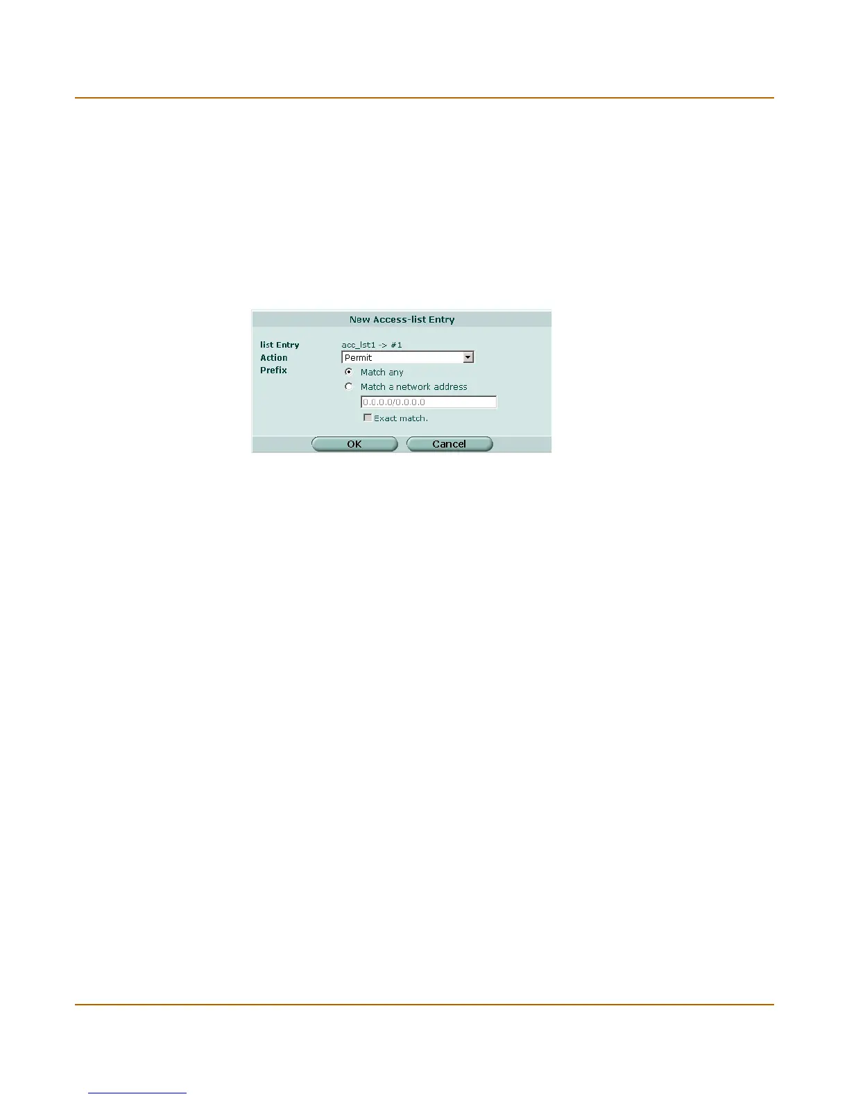 Exact match By default, access list rules are matched on the prefix or any more