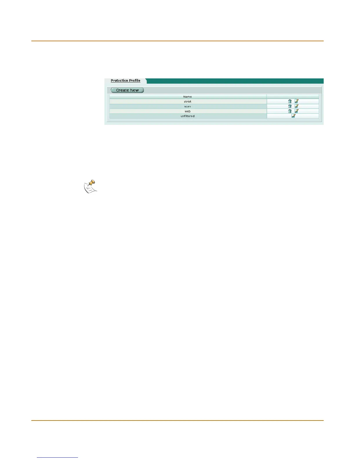 Note: A protection profile cannot be deleted (and the Delete icon is not visible) if it is selected in