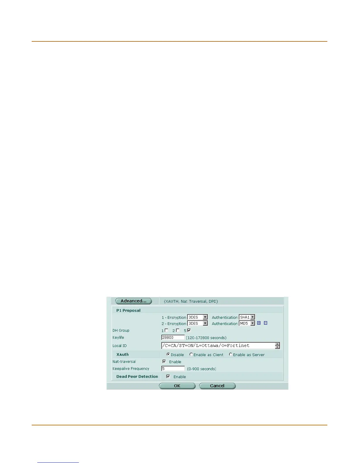 • Select Accept peer ID in dialup group to accept remote clients that belong