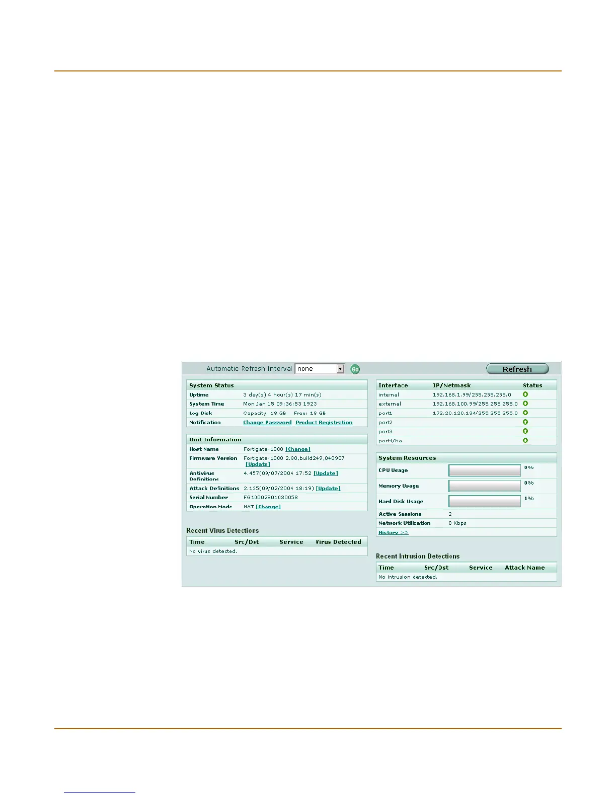 Refresh Select to manually update the system status display.