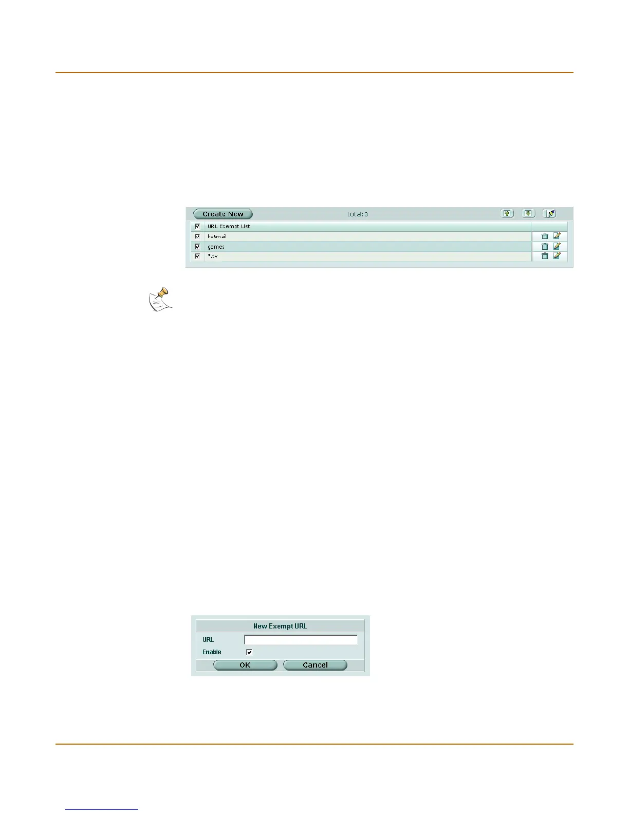 URL Exempt List The current list of exempt URLs. Select the check box to enable all the