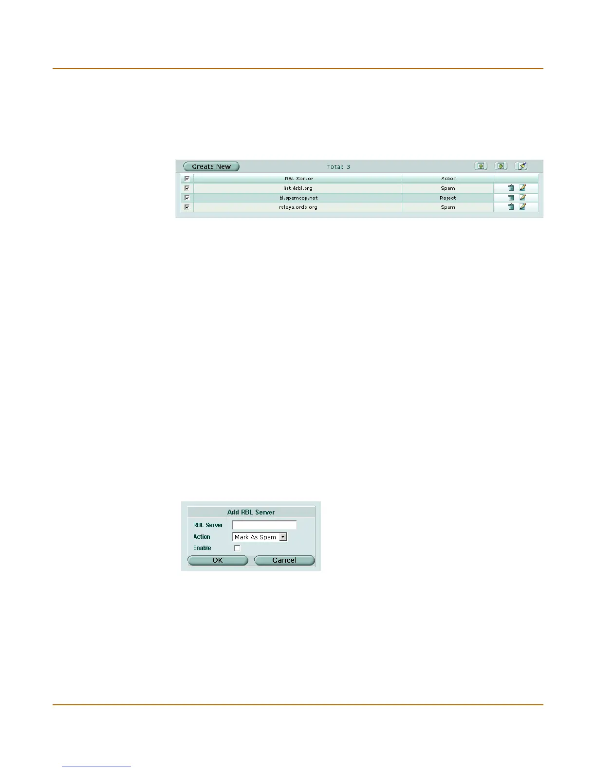 Create New Select Create New to add a server to the RBL & ORDBL list.
