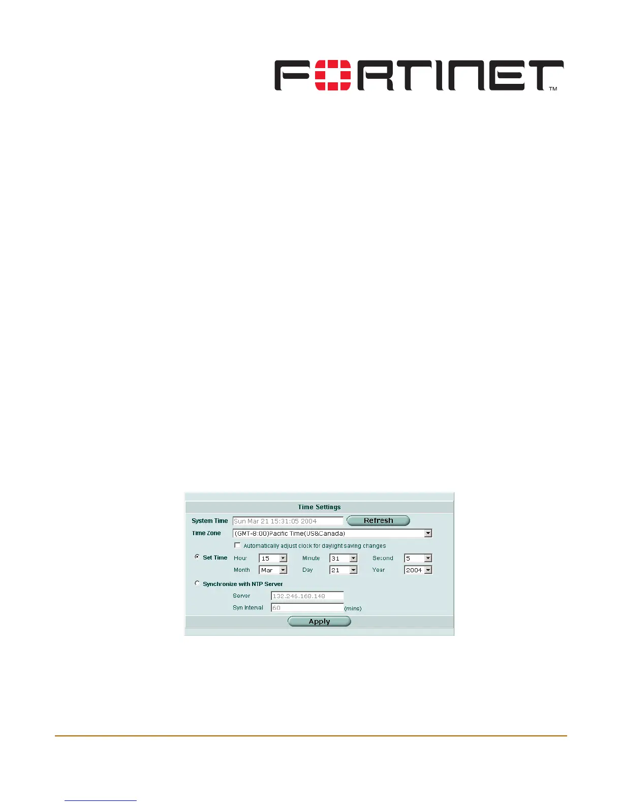 For effective scheduling and logging, the FortiGate system time must be accurate.
