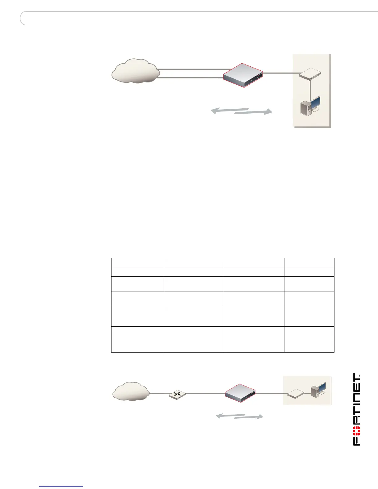 behind an existing firewall or behind a router. The FortiGate unit performs firewall