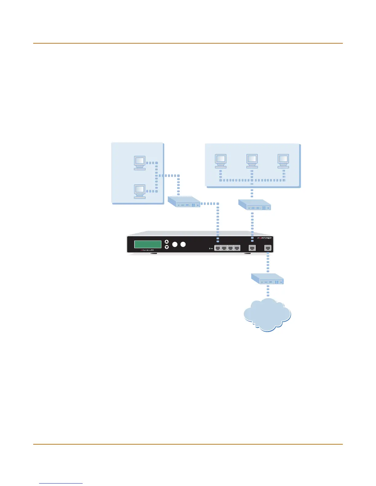 The FortiGate-1000 has four 10/100Base-TX connectors that can be connected to up