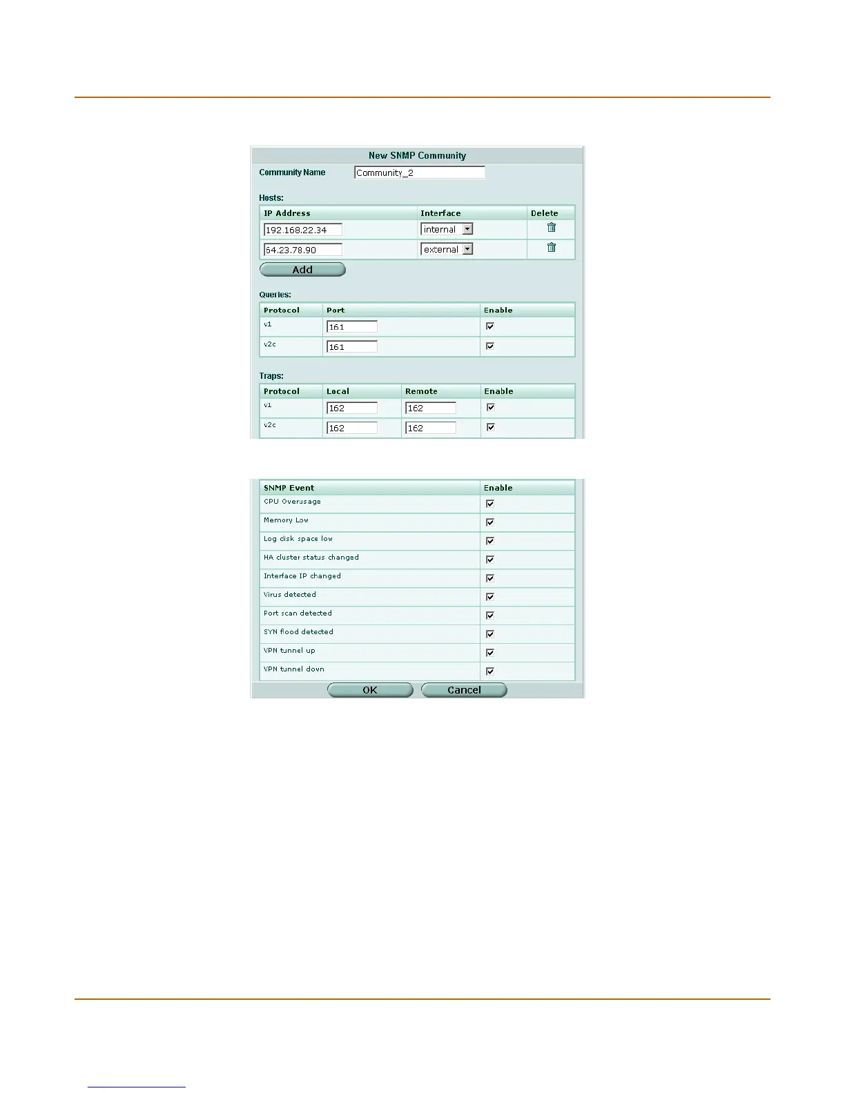 SNMP community to monitor the FortiGate unit. You can also set the IP
