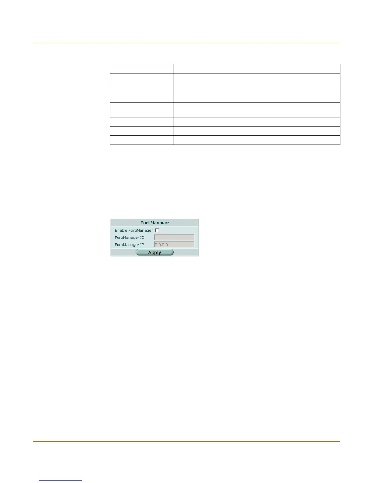 Enable FortiManager Enable secure IPSec VPN communication between the FortiGate unit