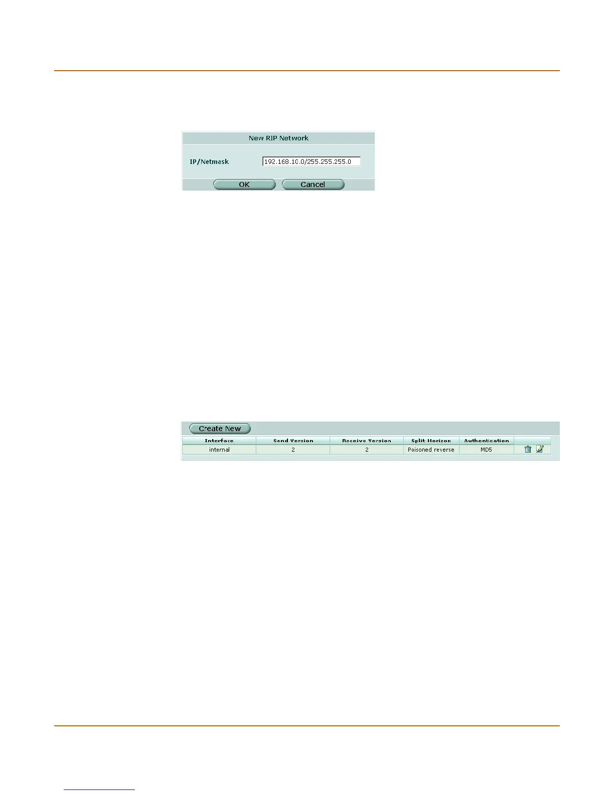 2 Select Create New to add a new RIP network or select the edit icon beside an existing