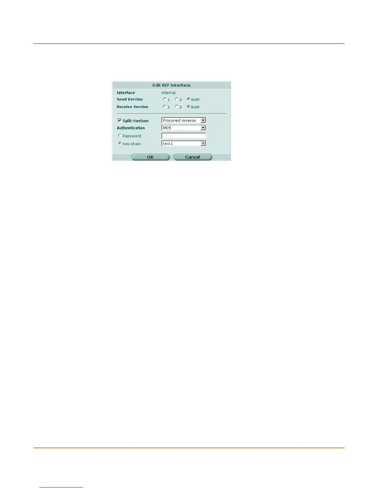 Authentication Select the authentication used for RIP version 2 packets sent and