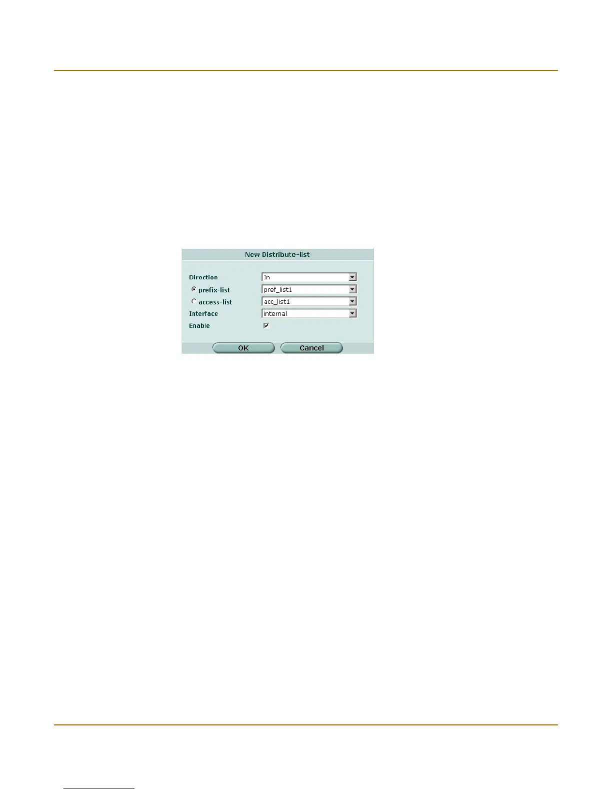 Interface Select the name of the interface to apply this distribute list to. If you do