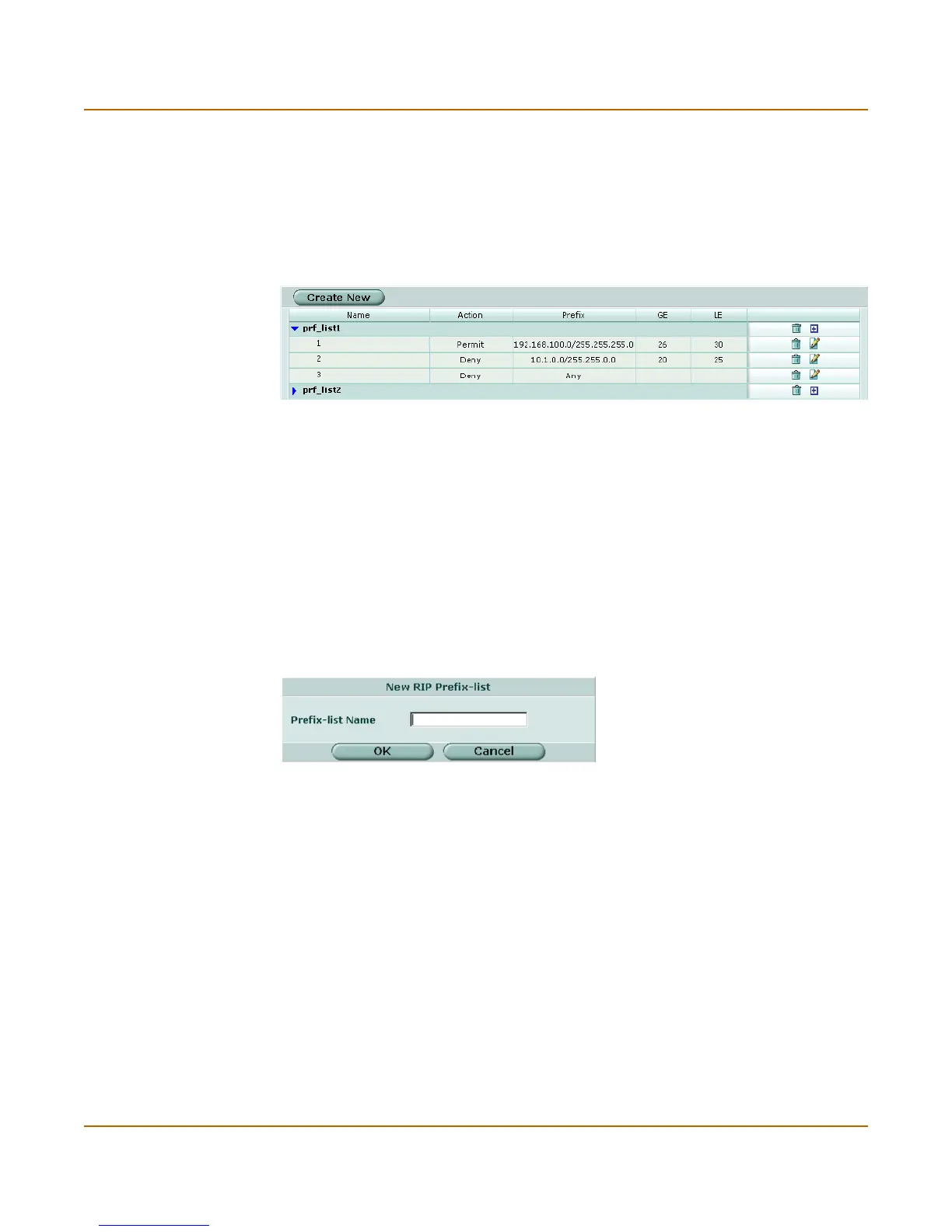 Create New Add a new prefix list name. An access list and a prefix list cannot have