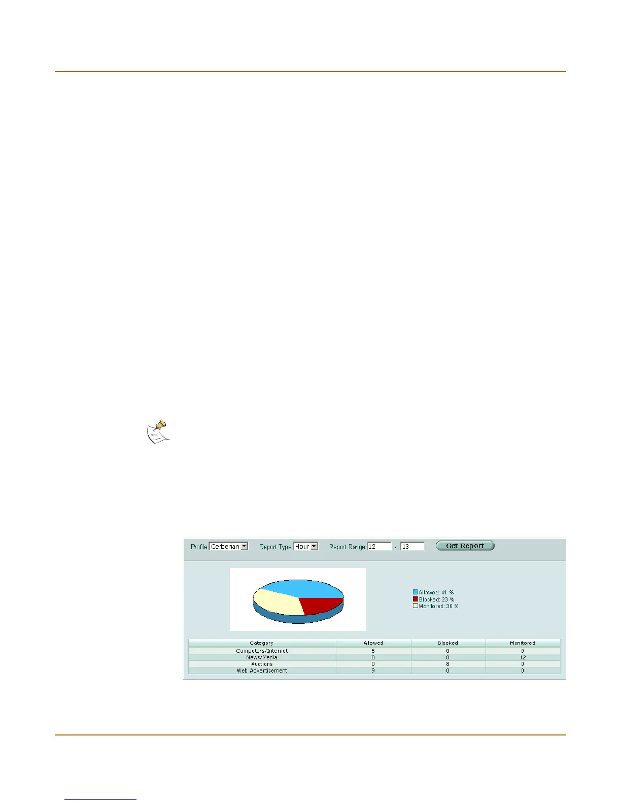 for each category. You can view reports for a range of hours or days, or you can view