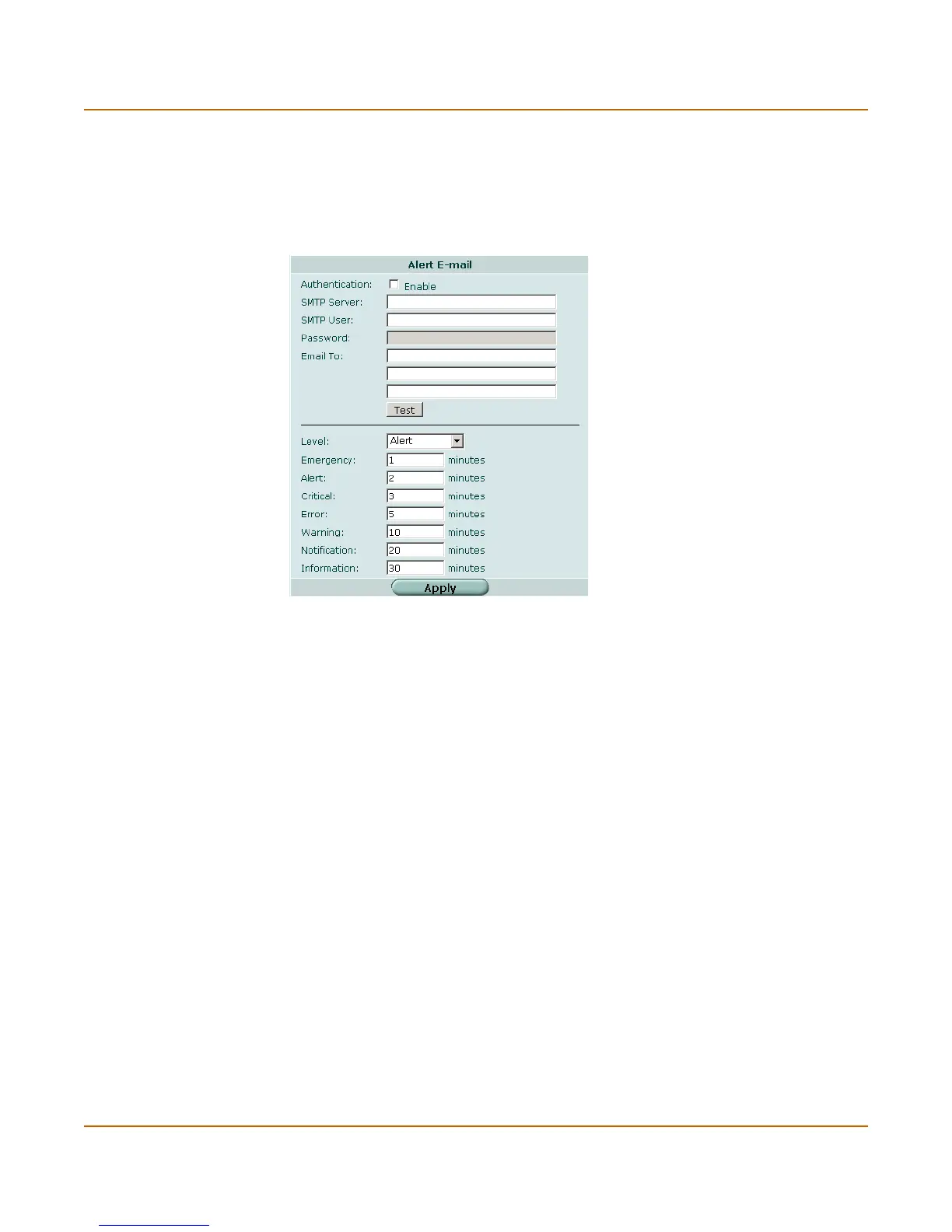 Alert The interval to wait before sending an alert e-mail for alert level log