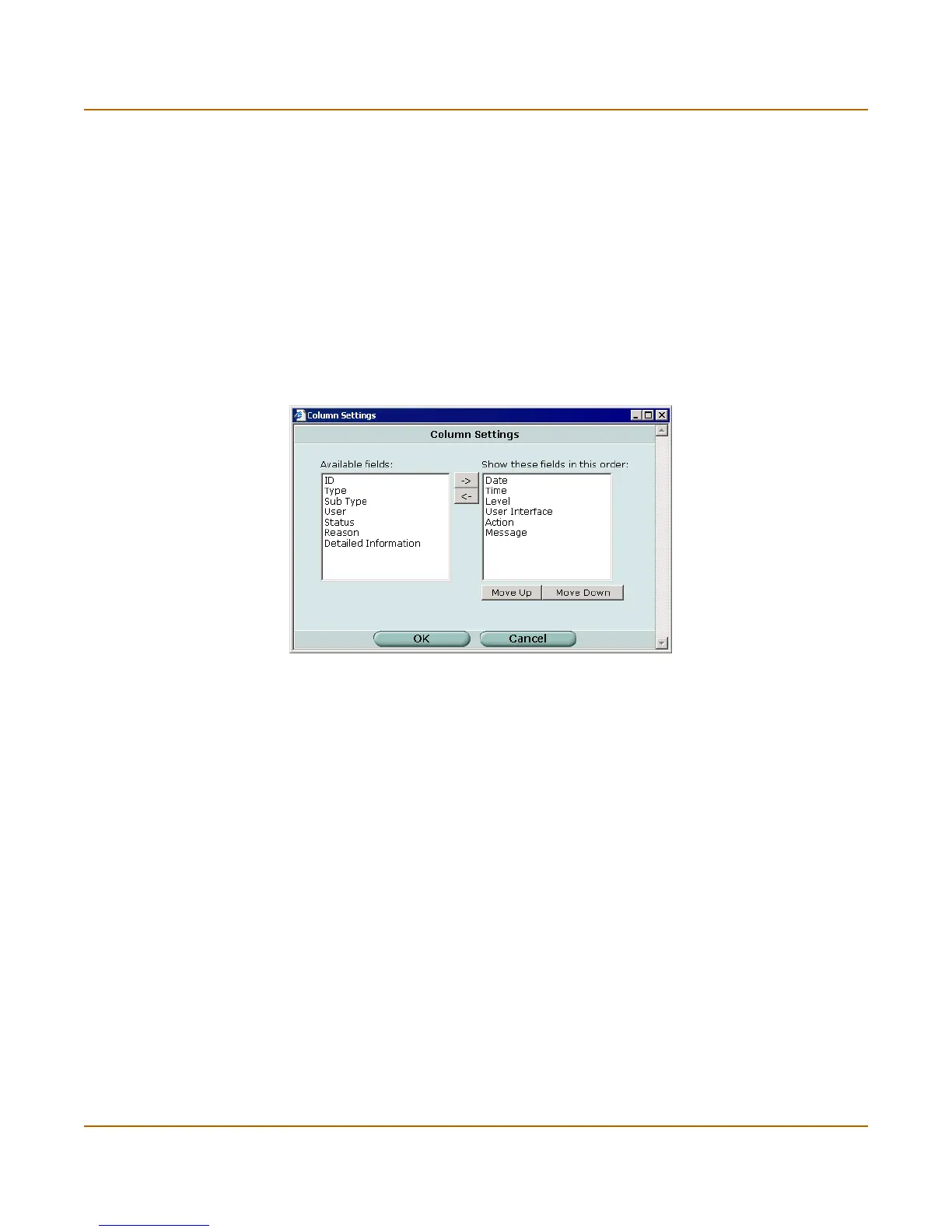Move up Move selected field up one position in the Show these fields list.