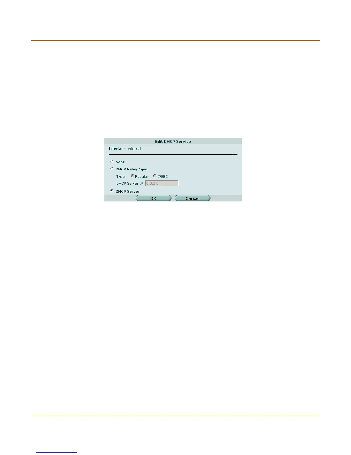DHCP Server Select DHCP Server if you want the FortiGate unit to be the DHCP server.