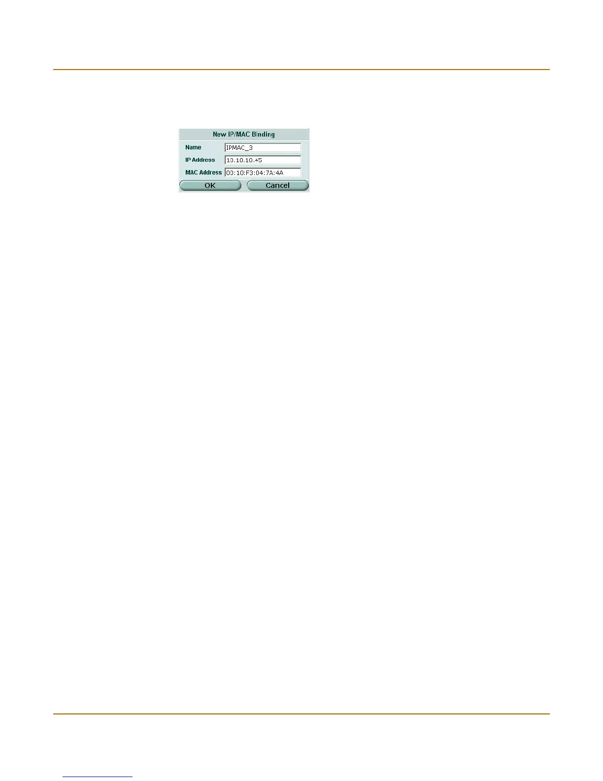IP Address Enter the IP address for the IP and MAC address pair. The IP address must